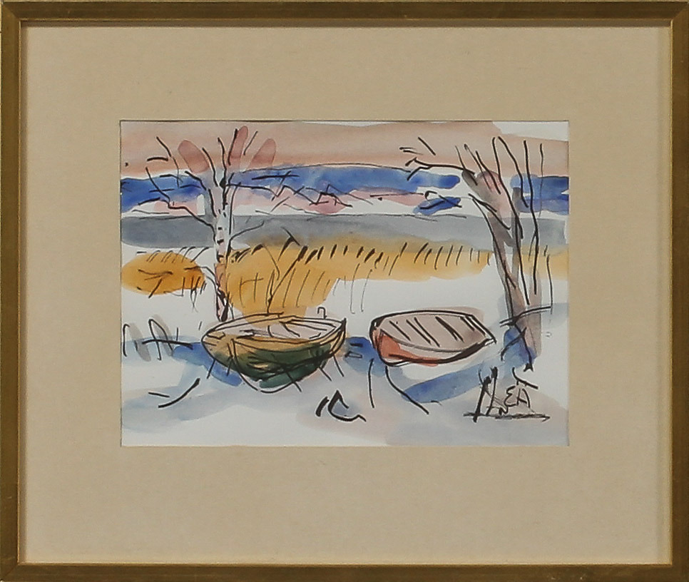 474000. ERLING ÄRLINGSSON. Två båtar. Akvarell på papper, signerad.
