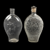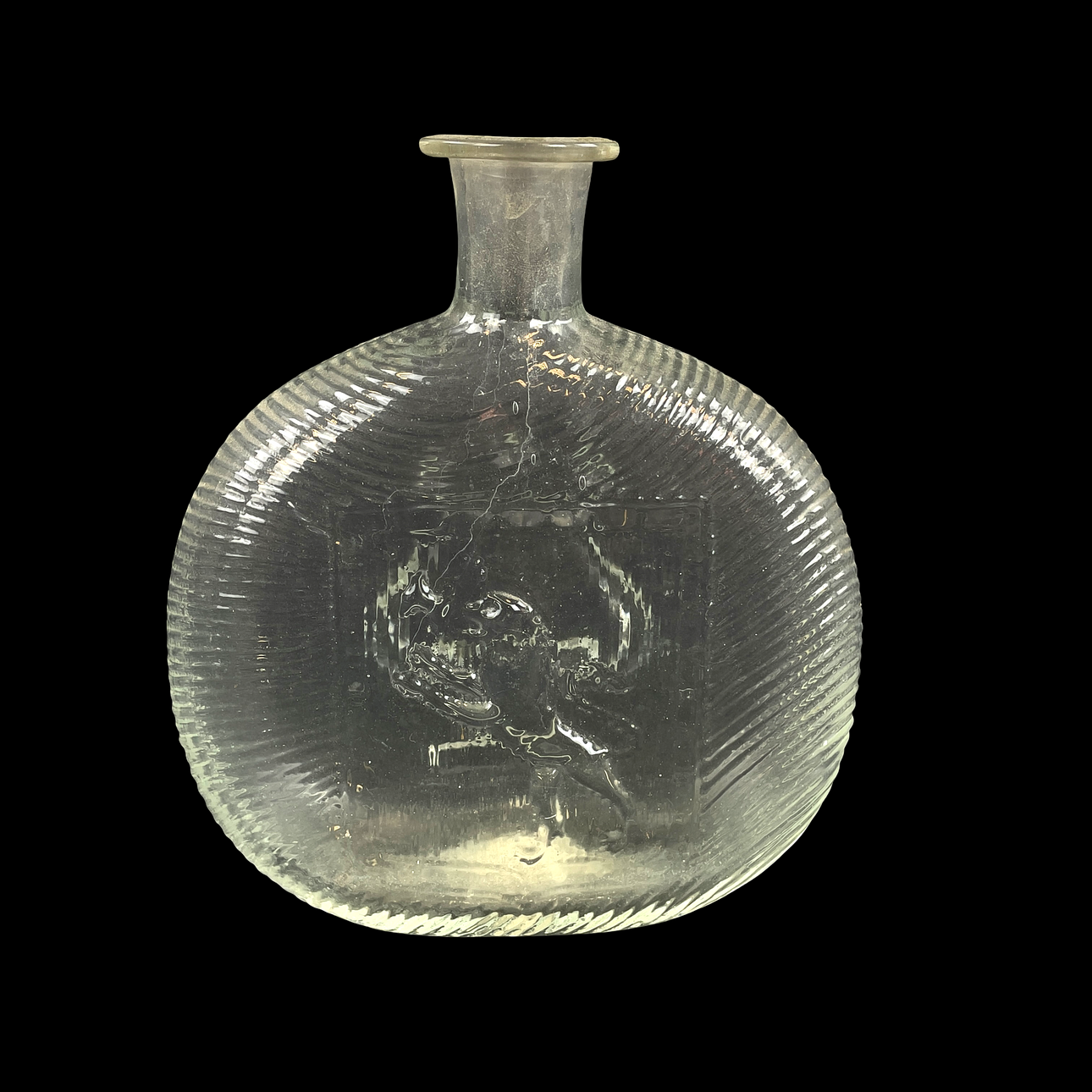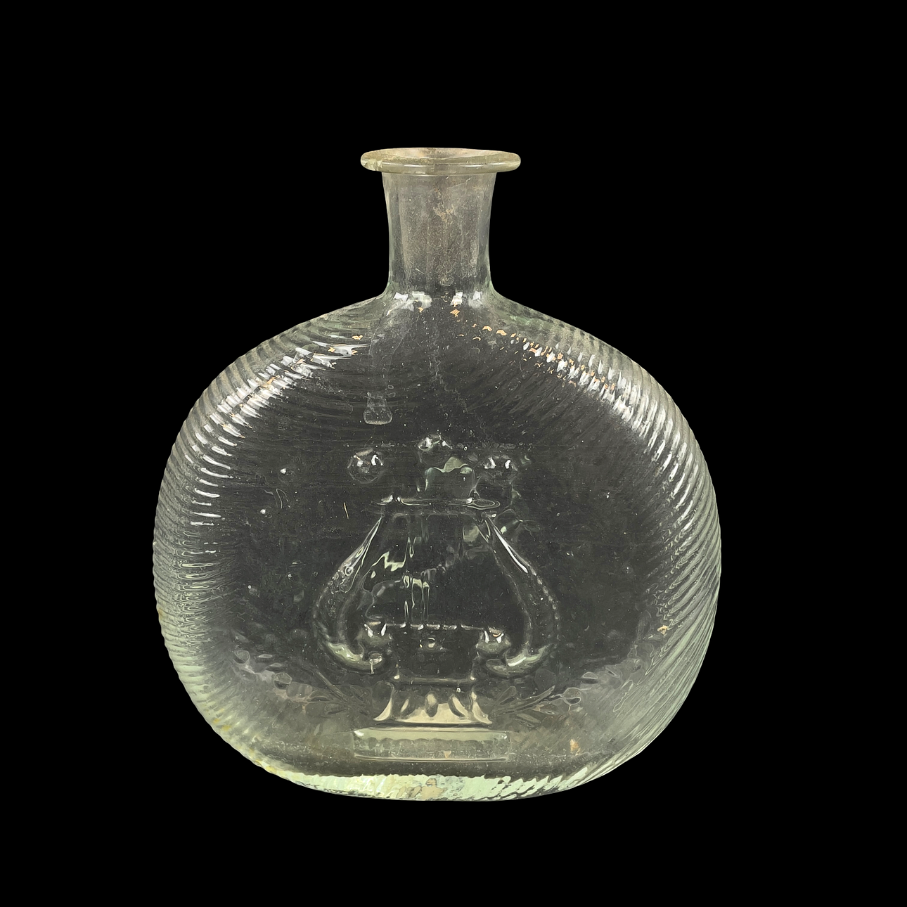 Flaska med lyra och lejon, munblåst, höjd ca 13 cm.