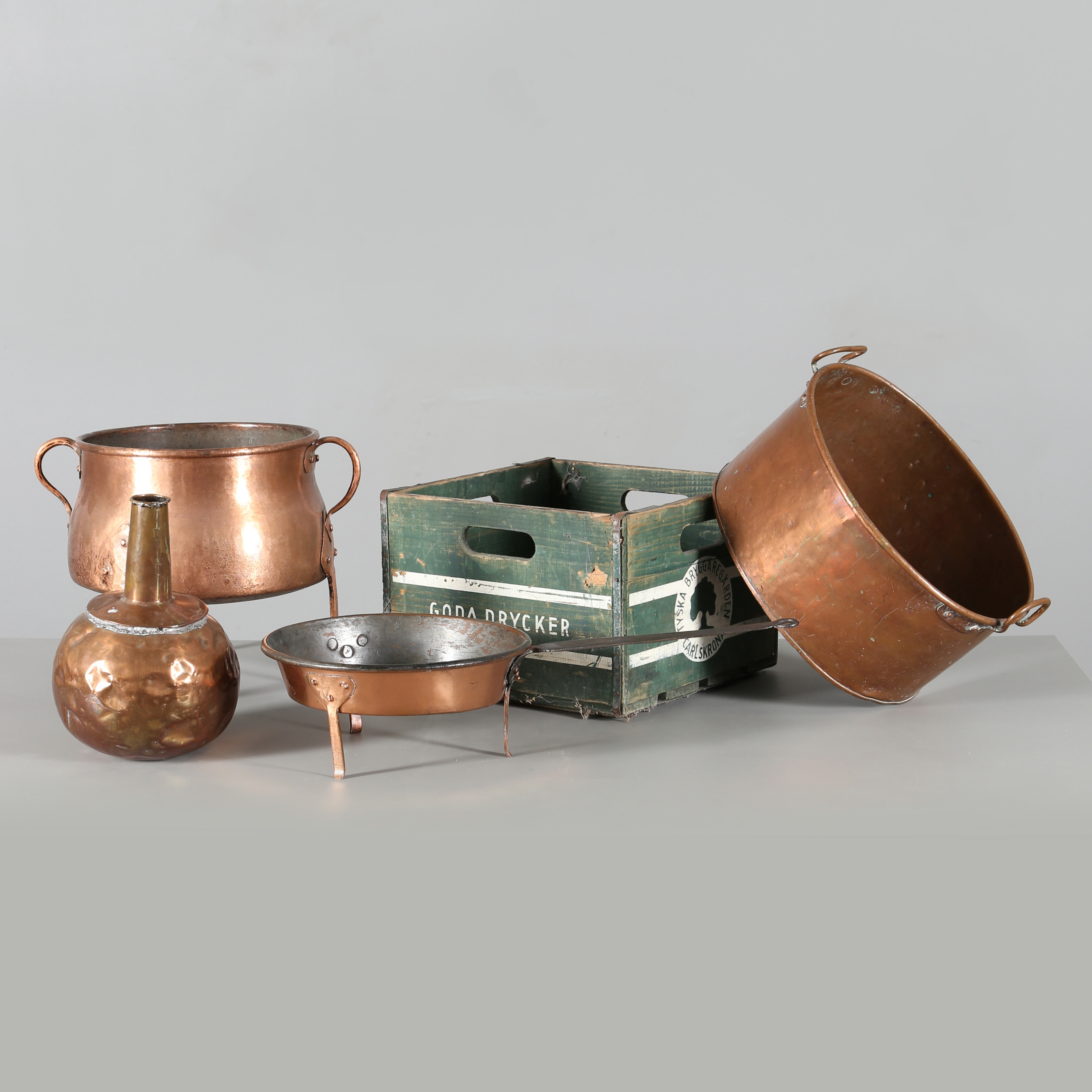 474953. DRICKABACK samt KOPPARFÖREMÅL, 5 delar.