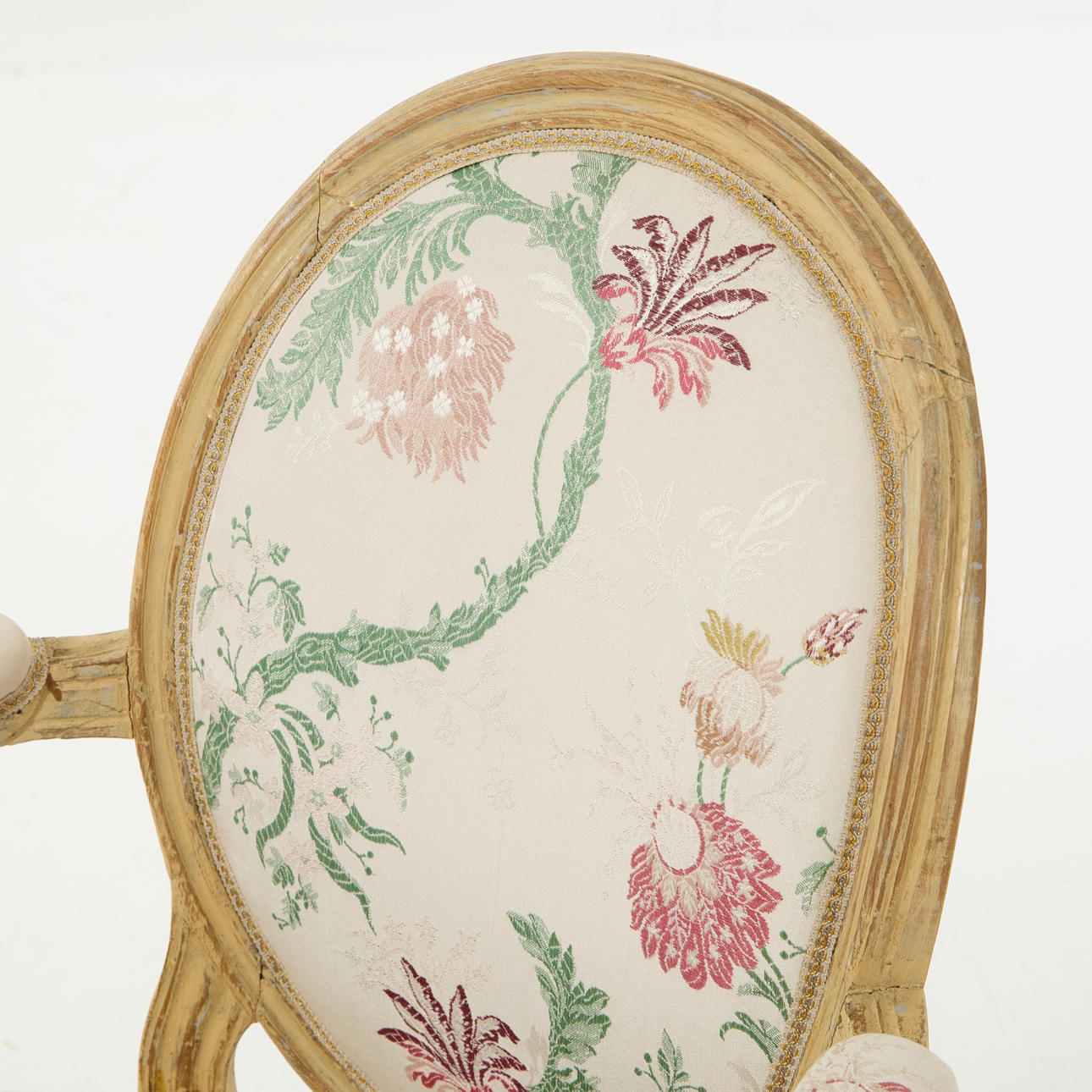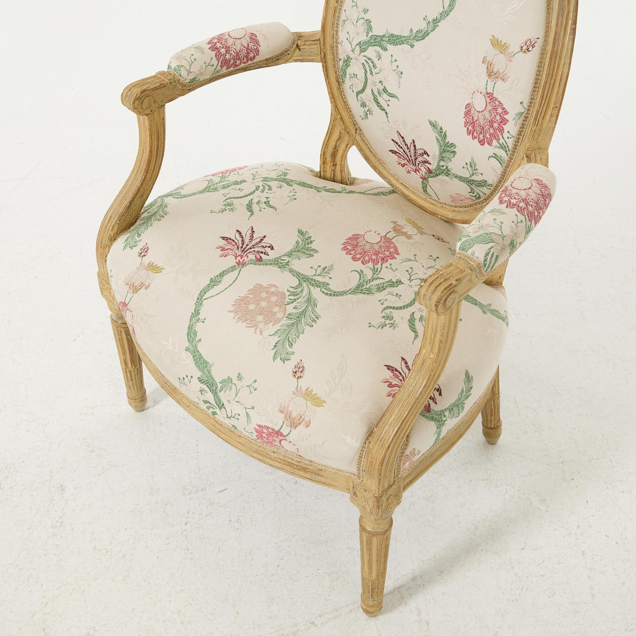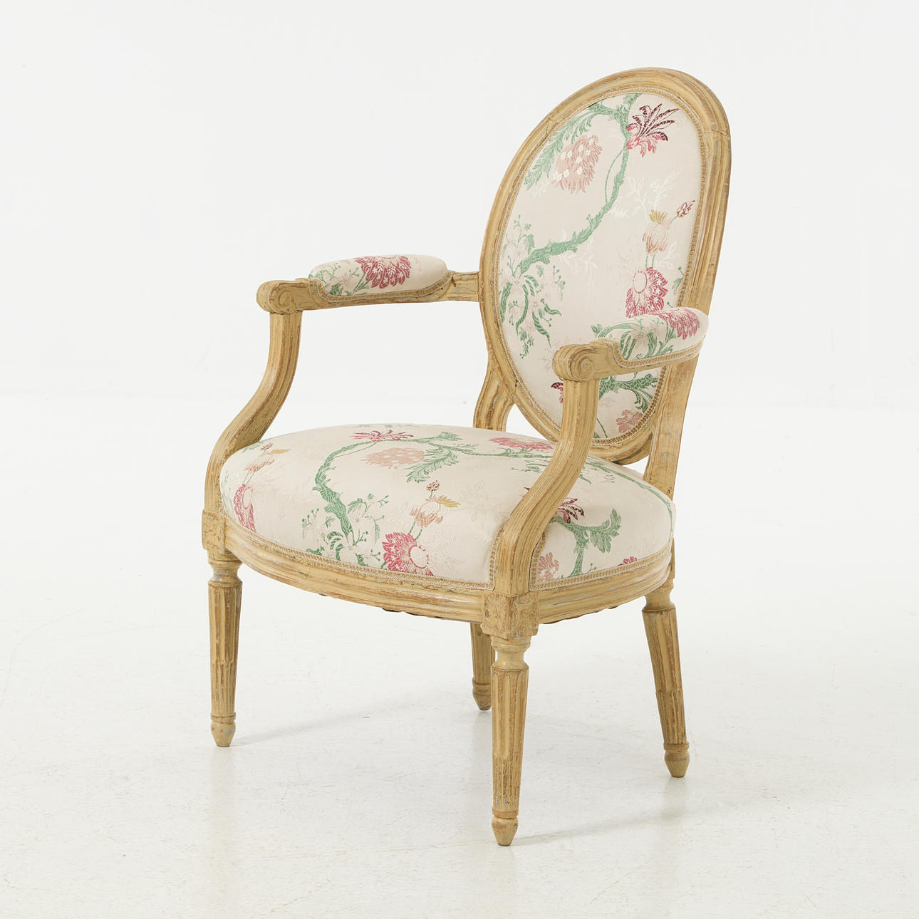 Kannelerade ben, hörnfleuronger, sitthöjd ca 40, rygghöjd ca 87 cm.