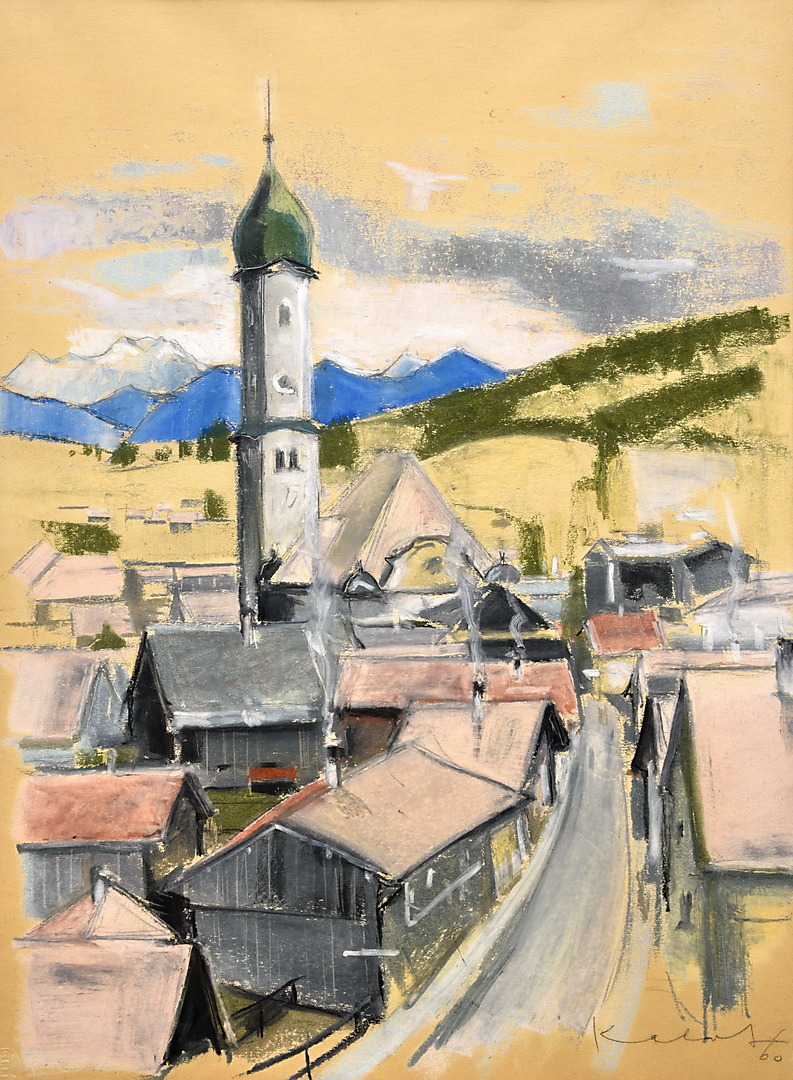 476355. KALOT, WALTER (1909 GLATZ - OBERSDORF). ”Schöllang med församlingskyrkan St Michael”.