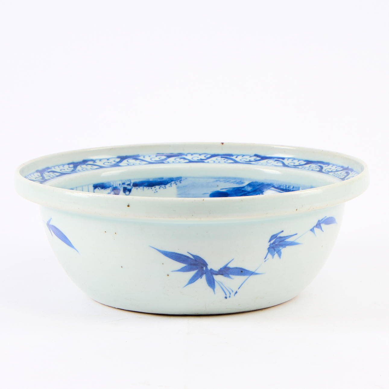 Kina. Porslin, dekor i underglasyr blått. H 9, D ca 24,5 cm.