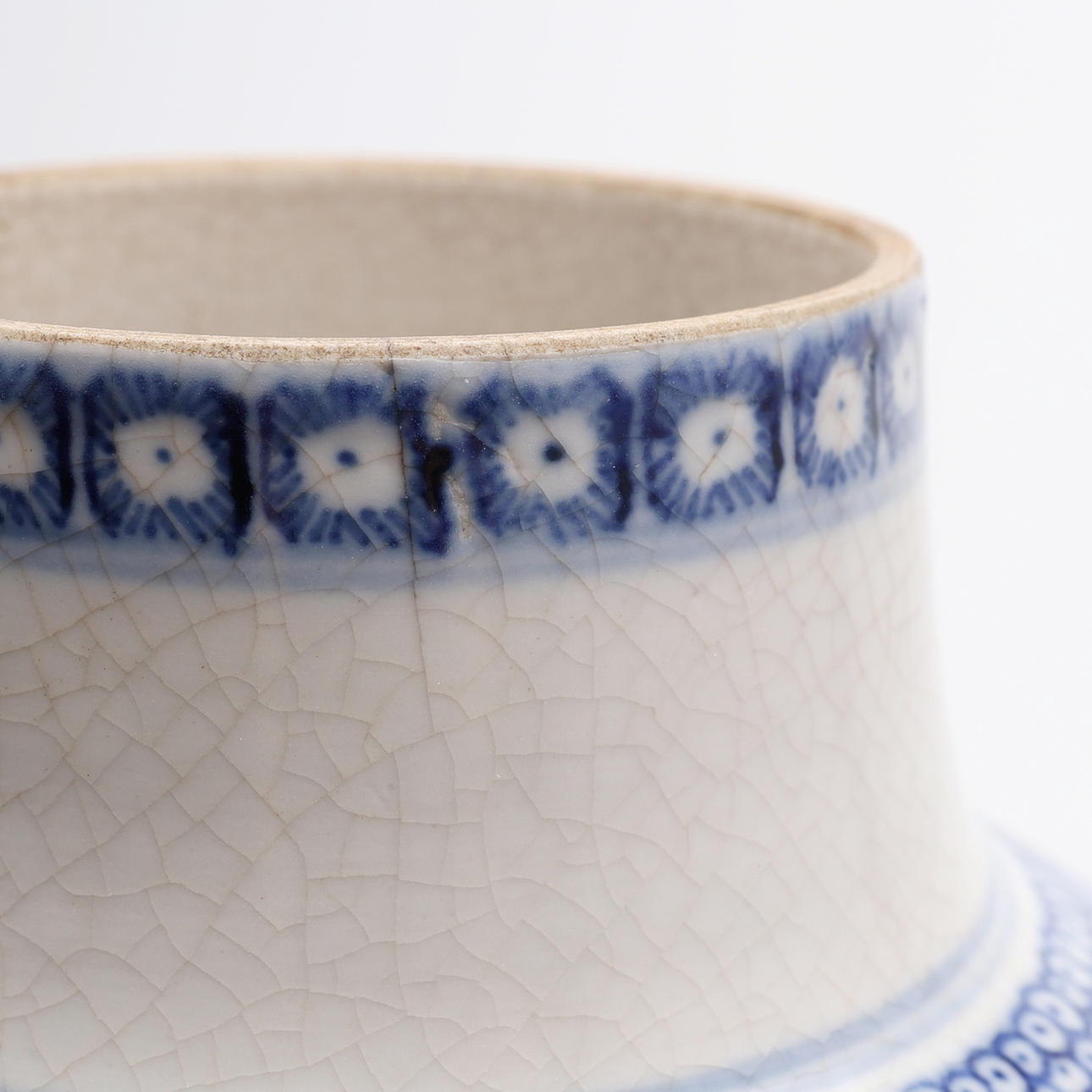 Genomgående spricka i mynningen, i övrigt gott skick.