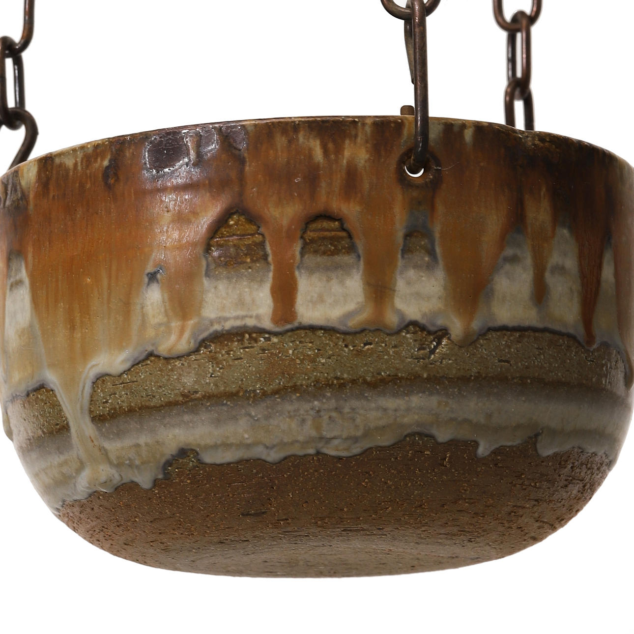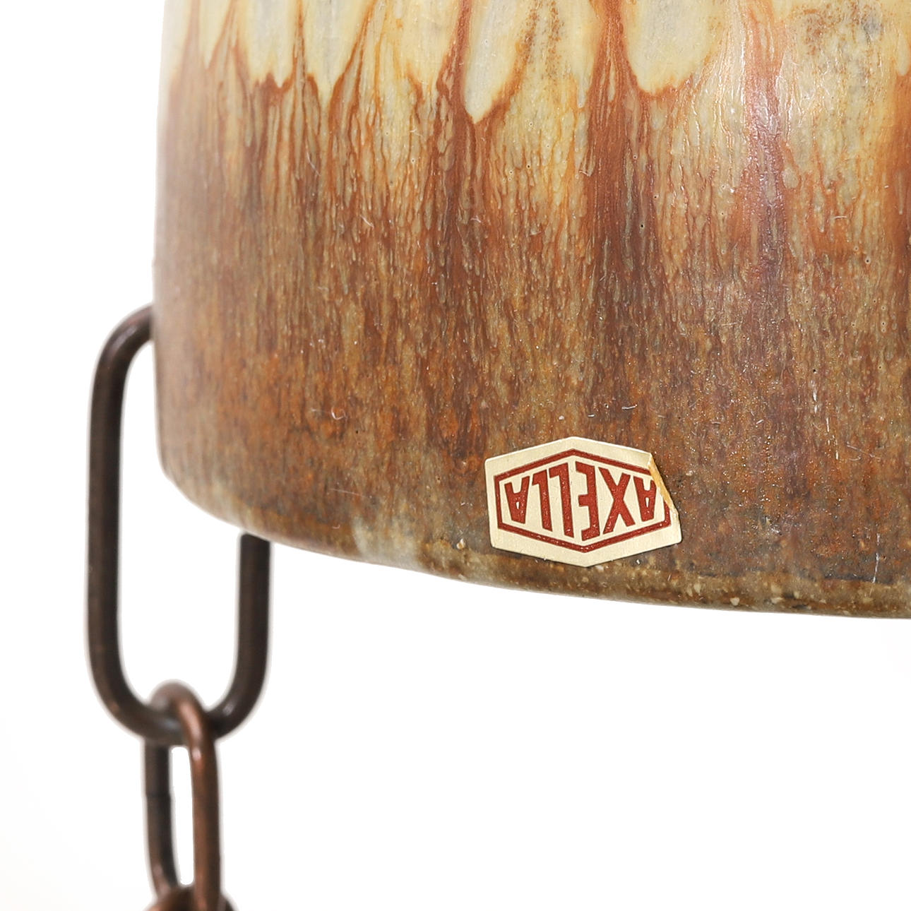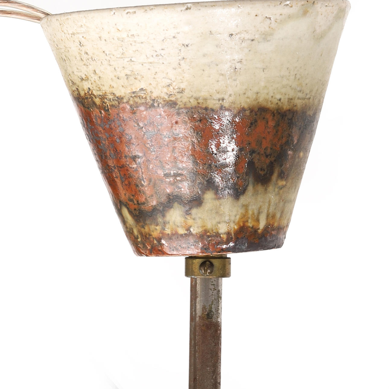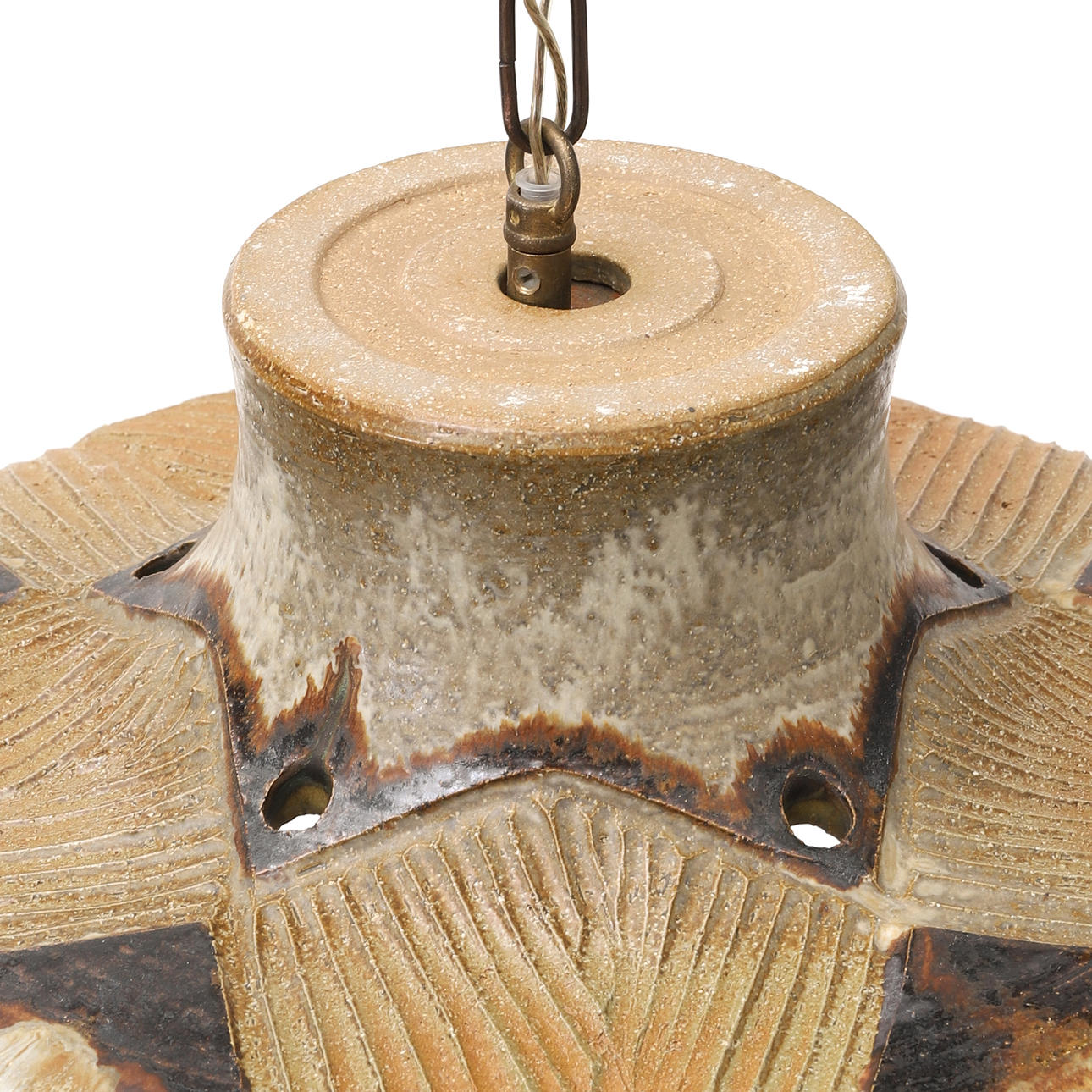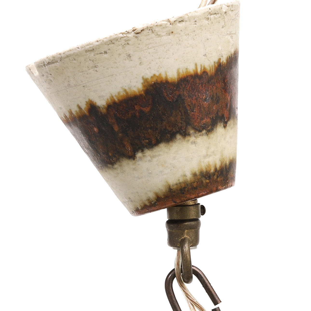 Glaserat stengods. Taklampa diameter 40, höjd ca 112 cm. Taklampa med ampel, diameter 17, höjd ca 130 cm. Märkta.