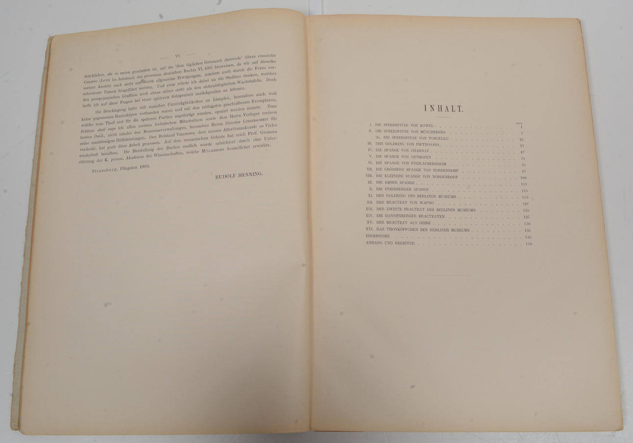 Rudolf Henning. K.J. Trübner, Strassburg, 1889. First edition. Folio, vi, 2, 156 pages, 3 plates (I-II, IV).