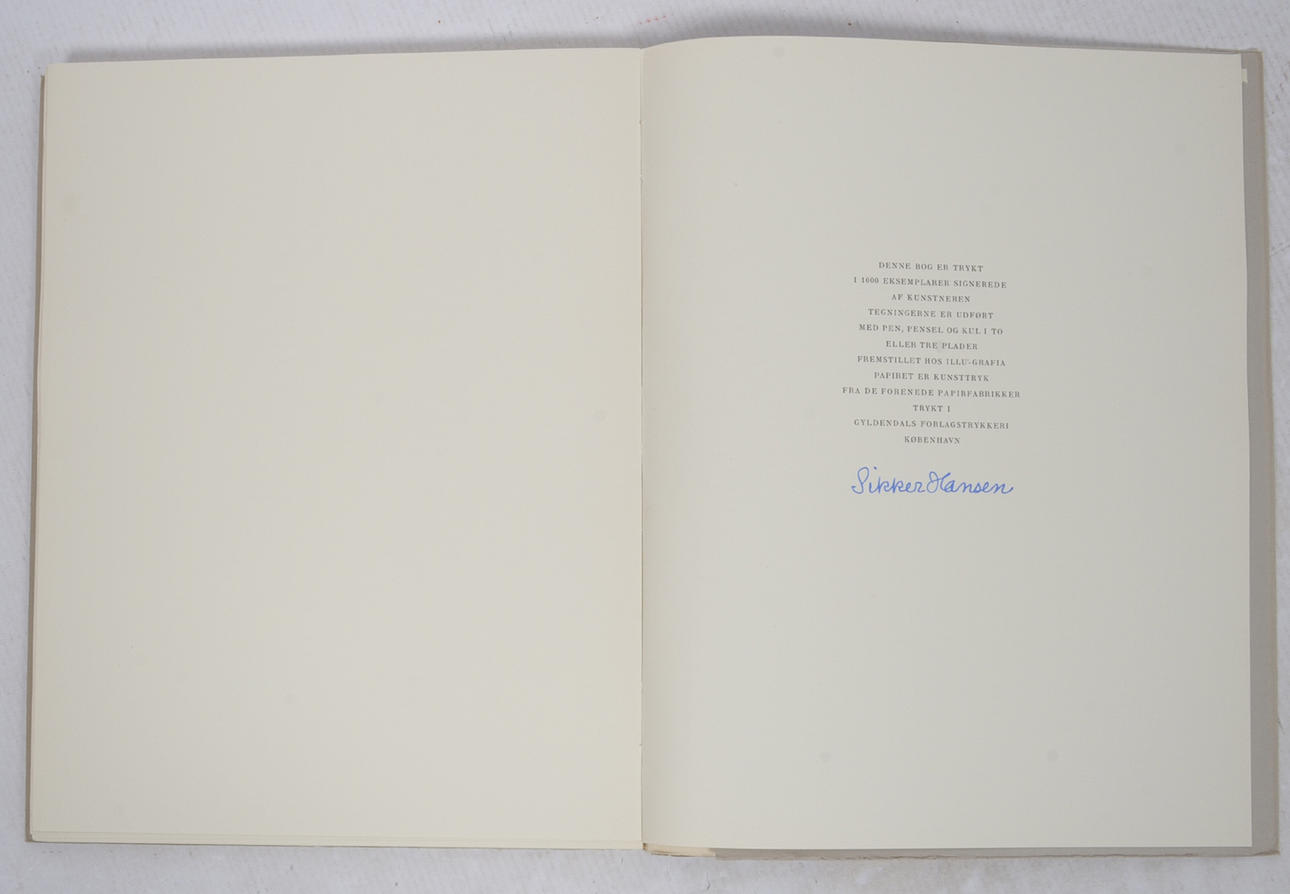 Gyldendal. København 1951. 140 sidor. Häftad. Kassett. 33x26 cm. Signerad av Sikker Hansen.