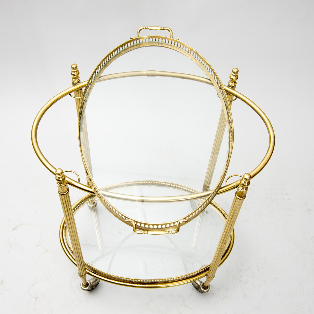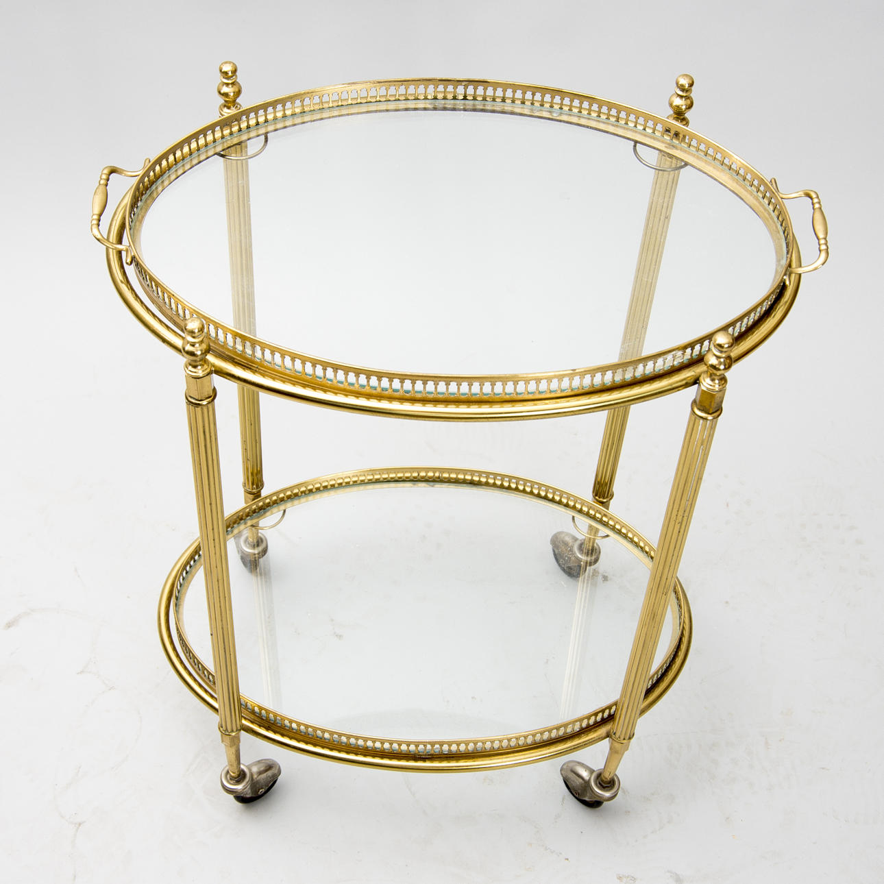SERVERINGSVAGN, mässing/glas, 1900-talets mitt.