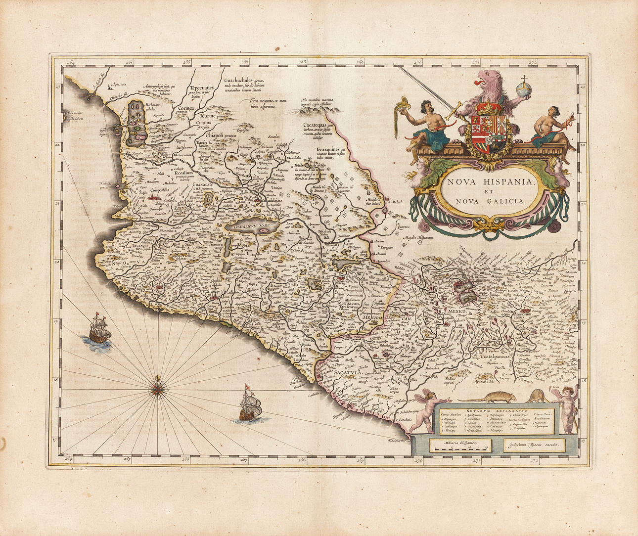 Joan Blaeu (1596-1673), "Nova Hispania, et Nova Galicia", graverad och handkolorerad karta över Mexico, ur "Atlas Maior Sive Cosmographia Blauiana...," ca 1640-55, med latinsk text a tergo.