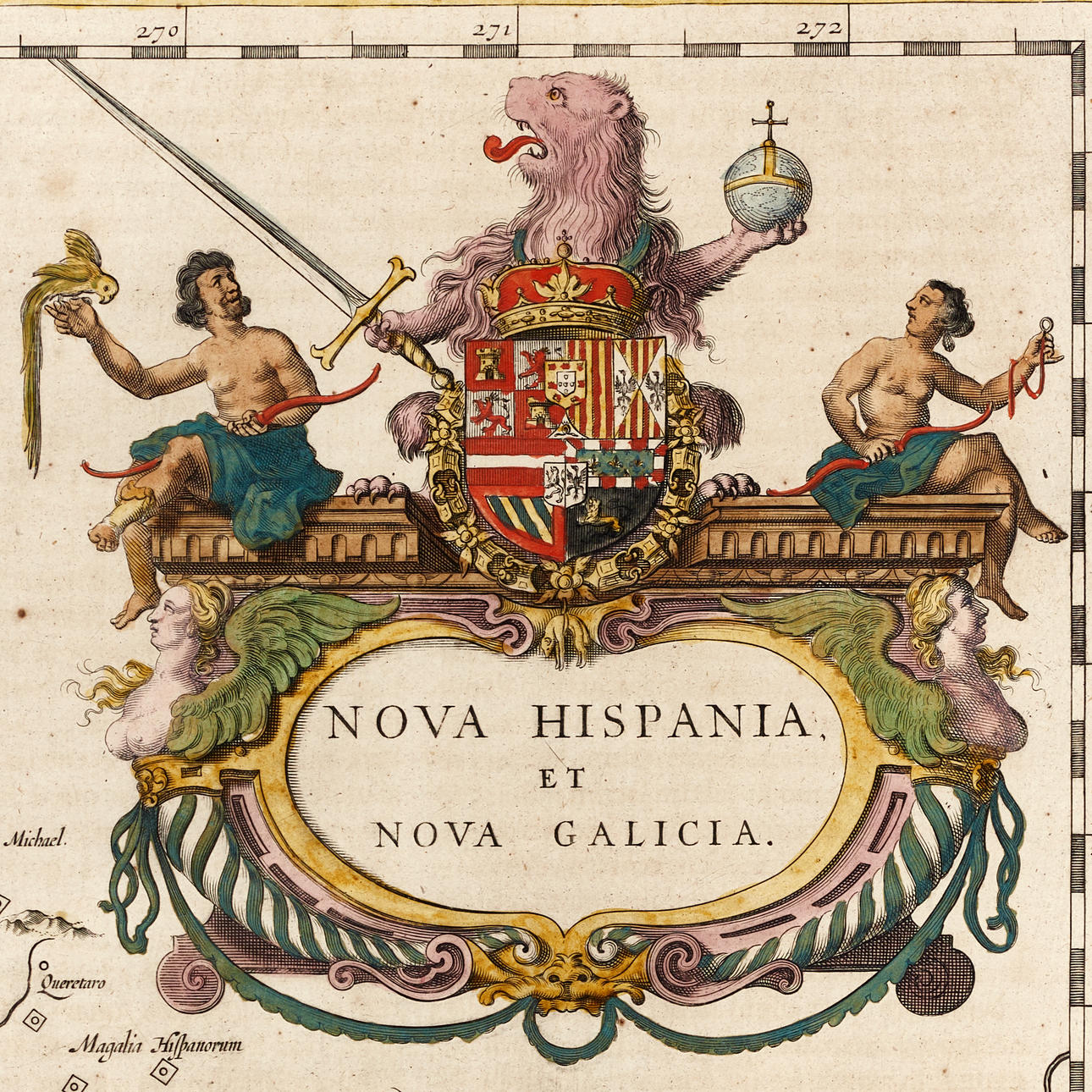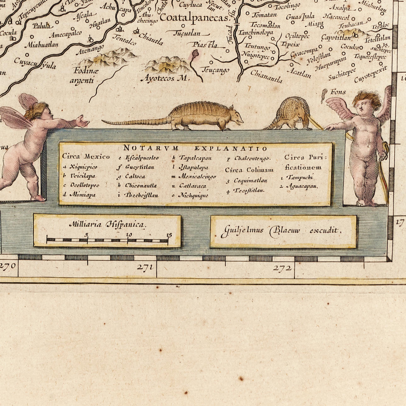 Kartan över Mexico sträcker sig från norr om Mazatlan till Acapulco och från Tehuacan till Sierra Madre och med Mexico City beläget vid en stor sjö strax nedanför den stora kartuschen. I den centrala delen är flertalet guld- och silvergruvor belägna, utmärkta på kartan med en diamantliknande symbol. Längst upp i mitten avbildas en bergskedja och texten anger att det finns stora mängder med silver att upptäcka där.