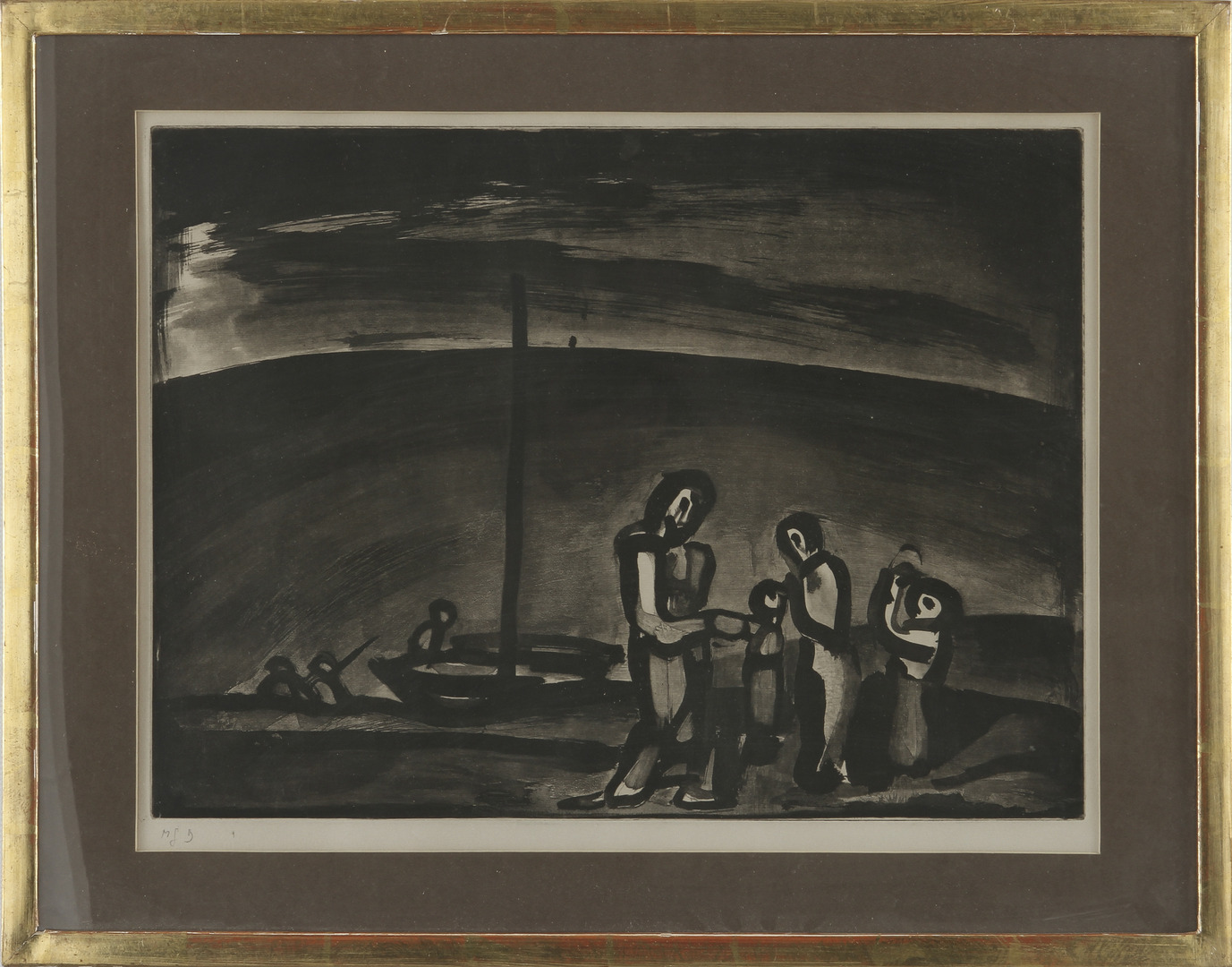 47845. GEORGES ROUAULT. Akvatint. Figurer vid båt.