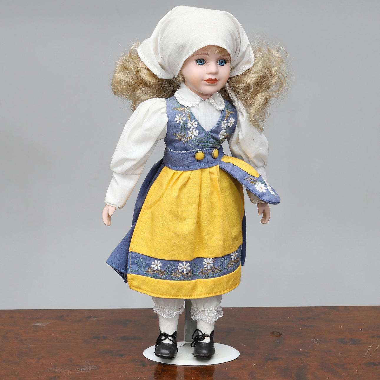 PORSLINSDOCKOR, 4 st, porslin och textil, 19/2000-tal.
