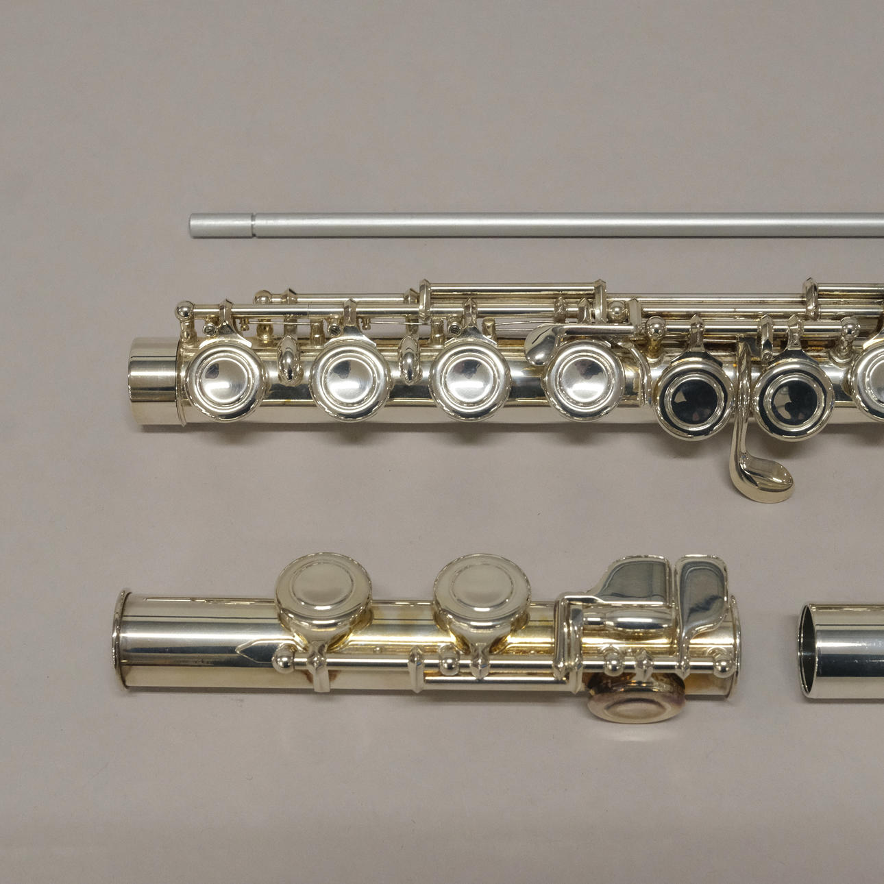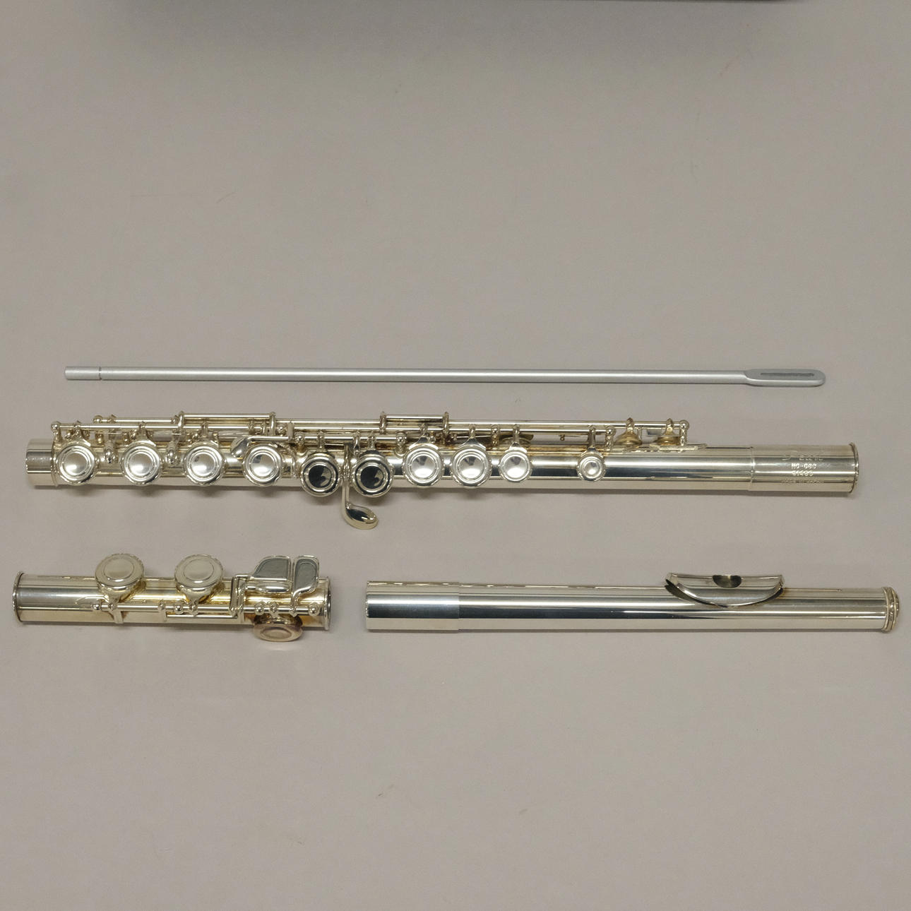 Tvärflöjt "Pearl No-966", 81450, försilvrad. Längd ca 61cm. Med etui.