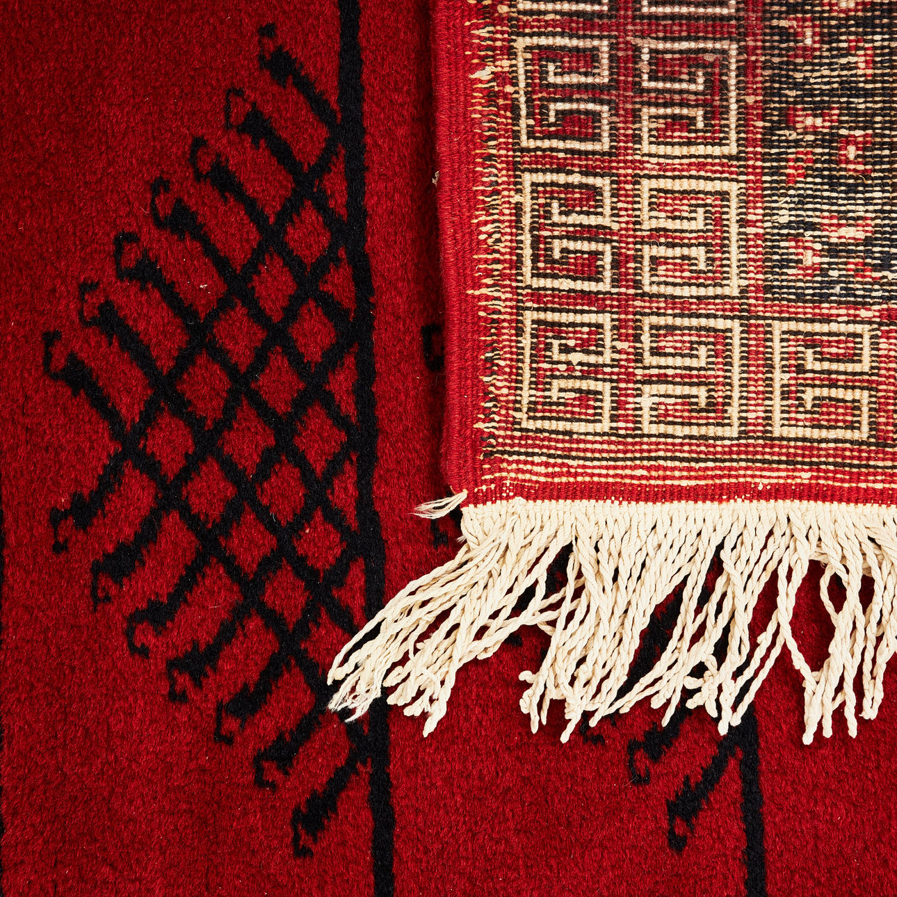ORIENTMATTA. Ull på bomullsvarp, röd bottenfärg.