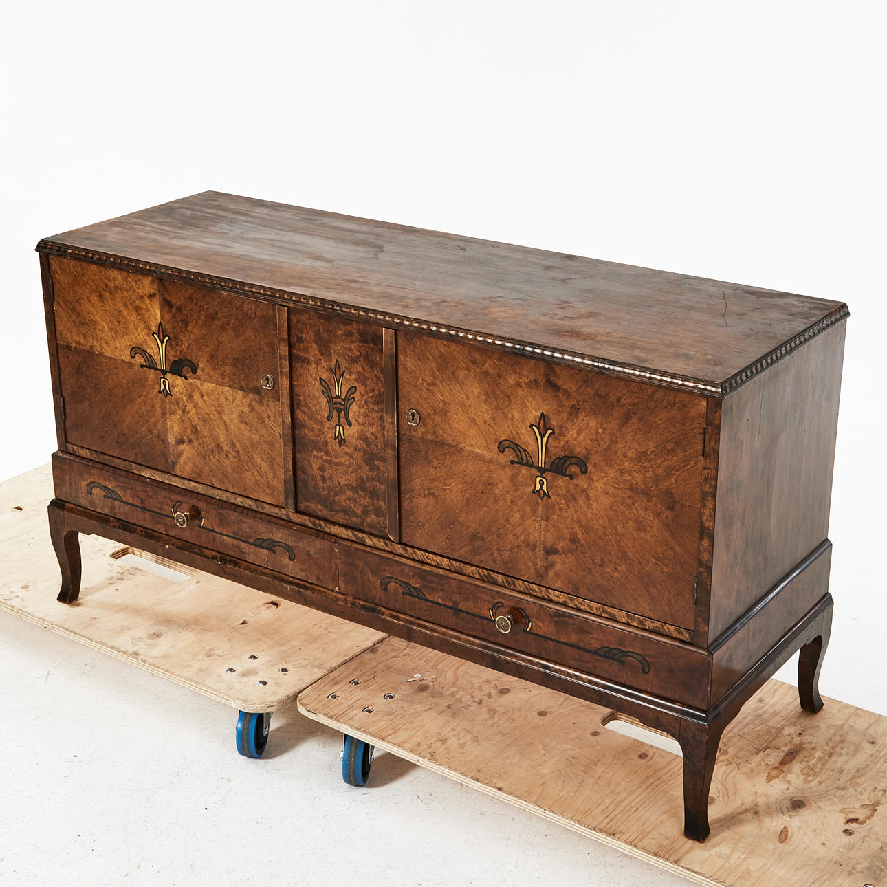 Bruksslitage, fanersläpp, inoljad yta, märken, lukt av träolja.