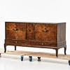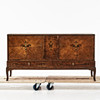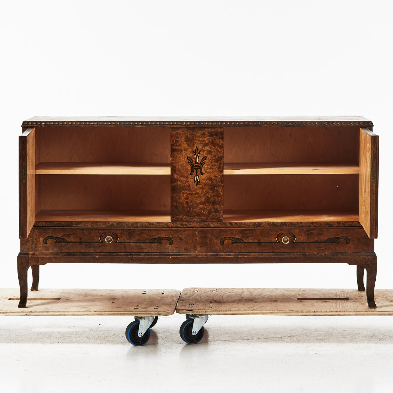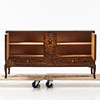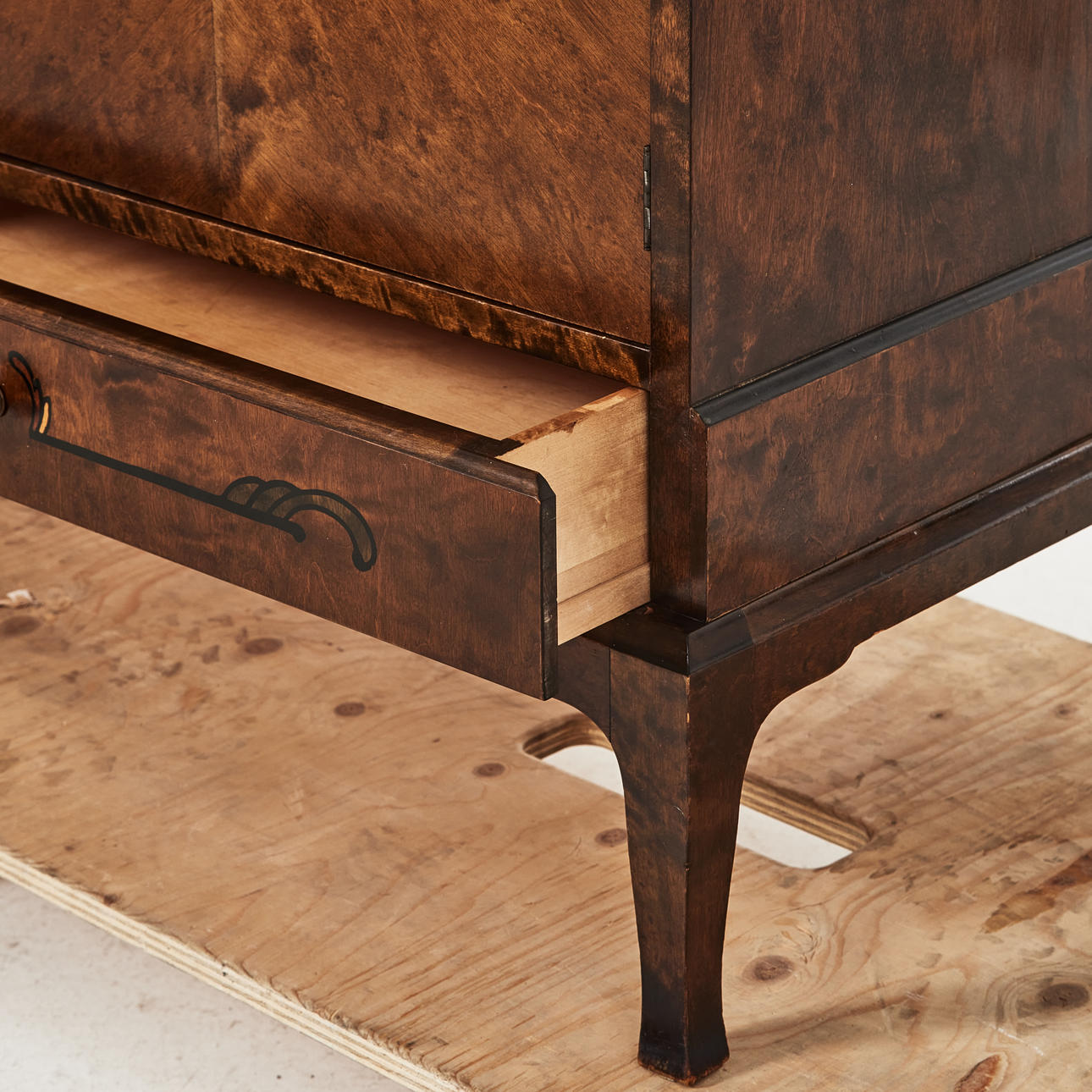 Mörkbetsad björk, med lådor, inredd med hyllplan, mått ca 76, 145 x 50 cm.