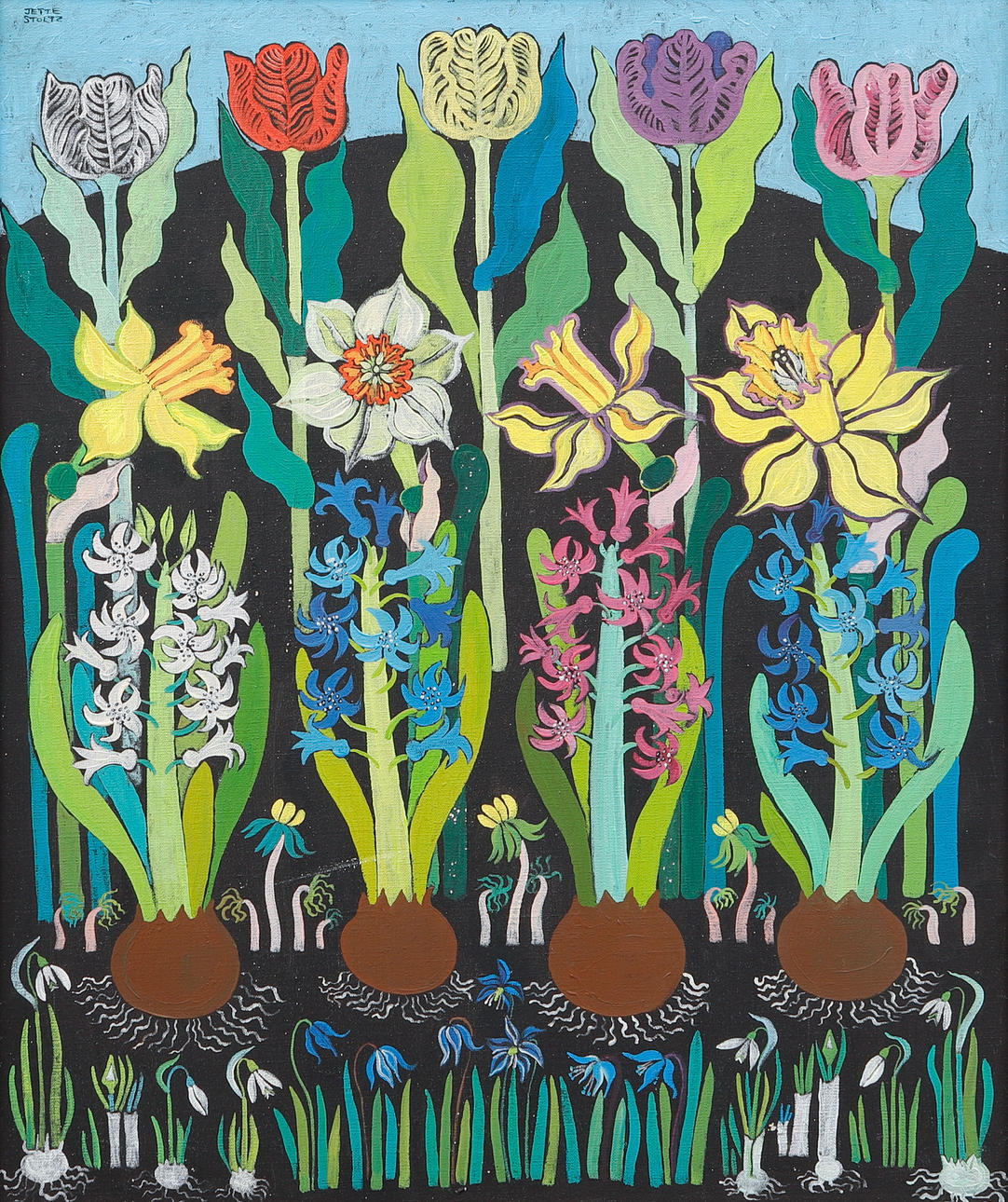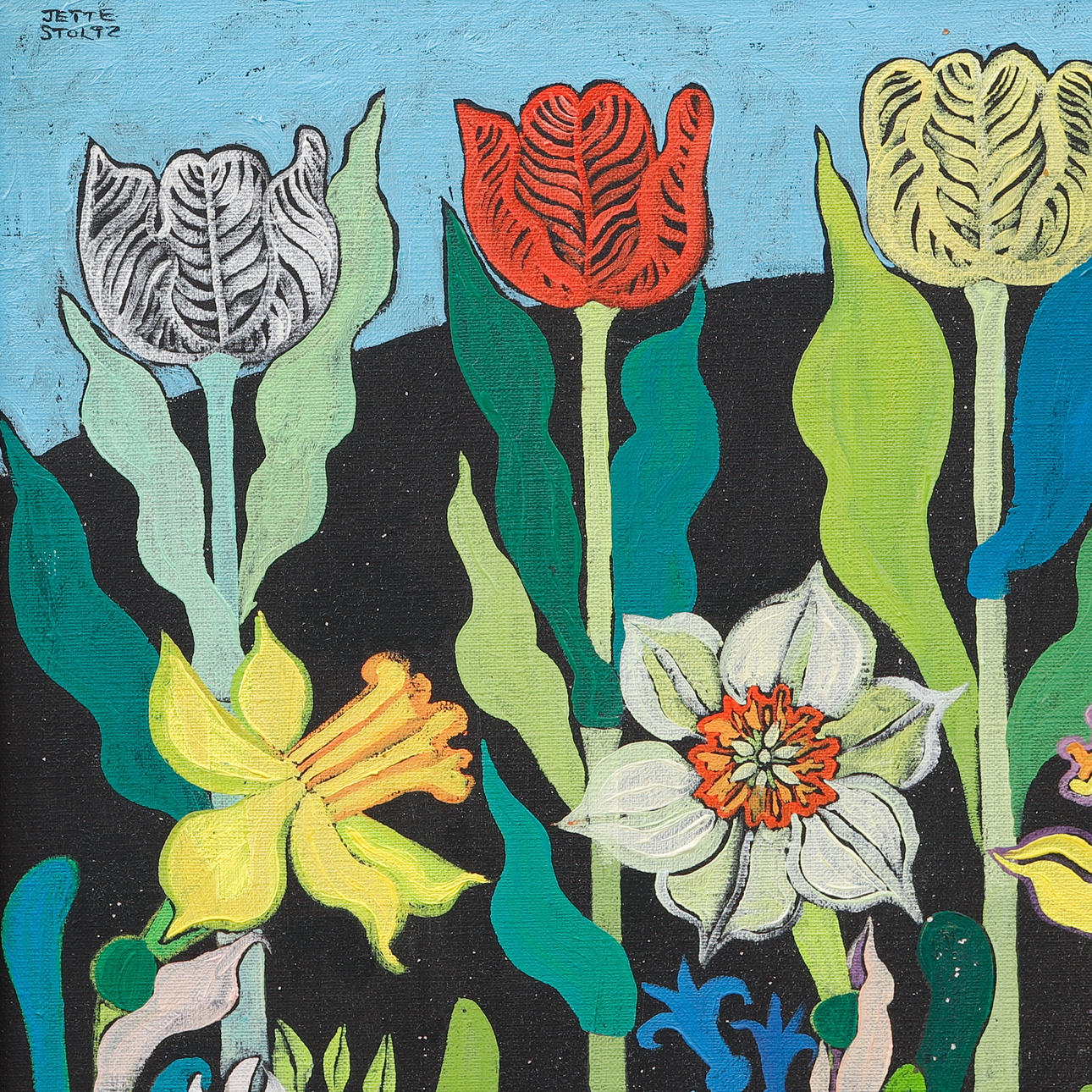 JETTE STOLTZ. Blommor, olja på duk, signerad.