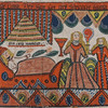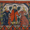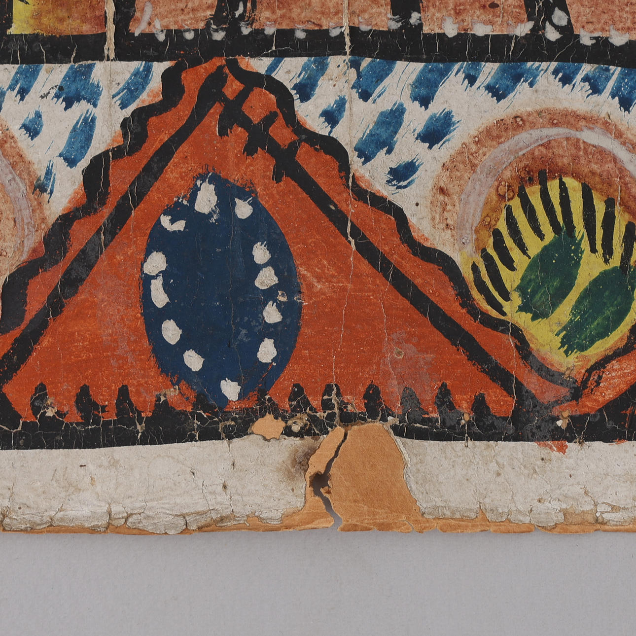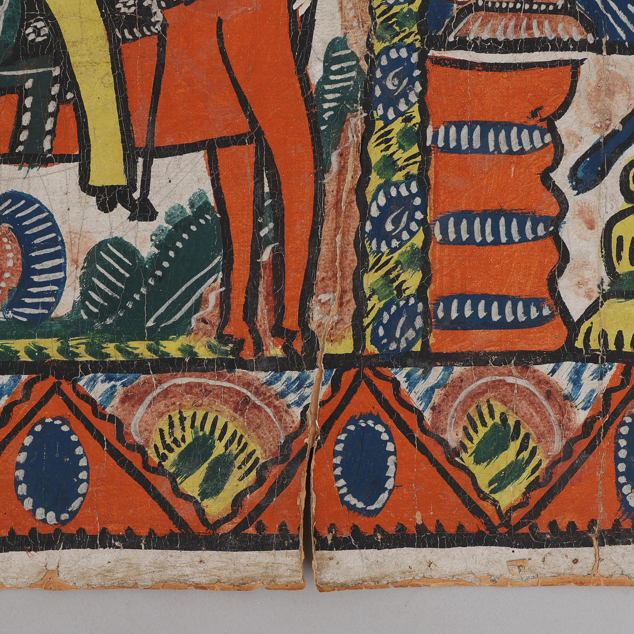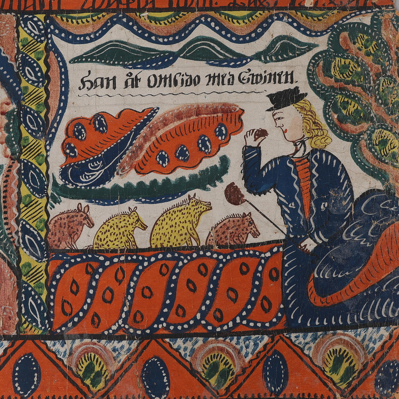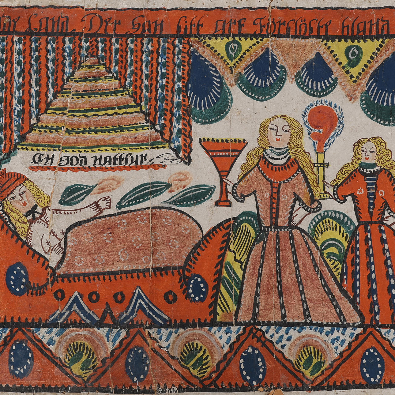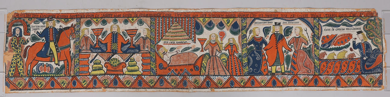 Bibliskt motiv visande "Den förlorade sonen", tempera på lumppapper, dubblerad, delar av datering synlig 64, ca 52x241 cm inklusive bakgrundspapper.