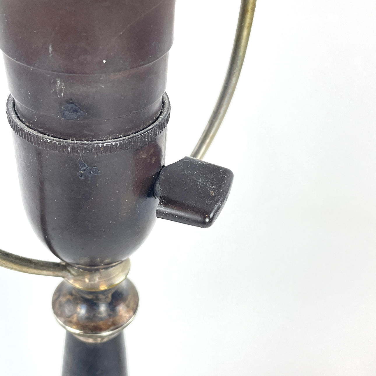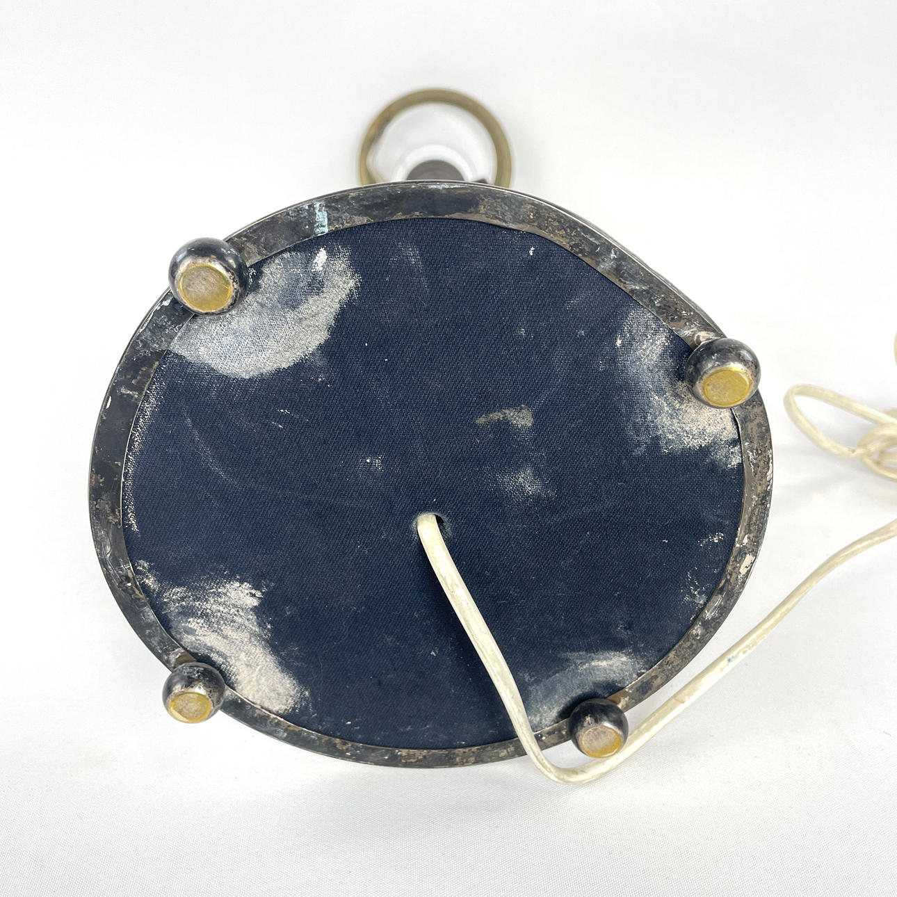 Bruksslitage. Skärm med fläckar, något bucklig. Lampfot något sned. Fungerade vid katalogiseringstillfället. Ingen funktionsgaranti lämnas.