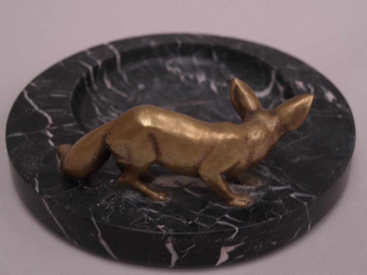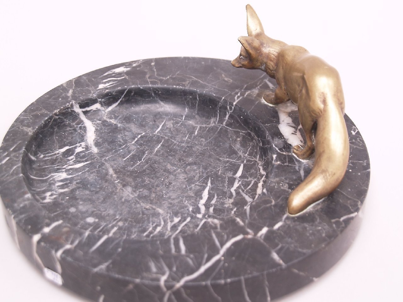 480297. MARMOR SKÅL MED MÄSSING FIGUR.