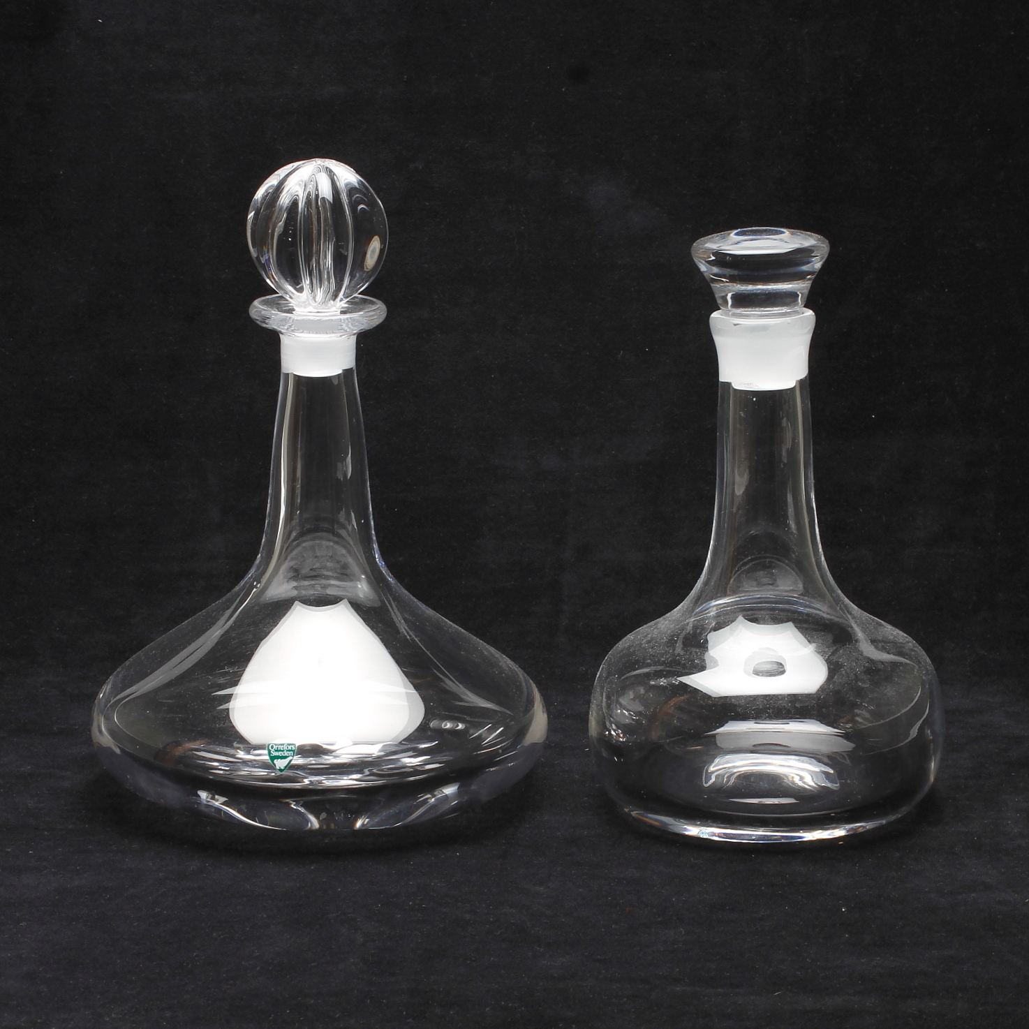480589. KARAFFER, 2 st. Glas. Orrefors, 1900-talets andra hälft.