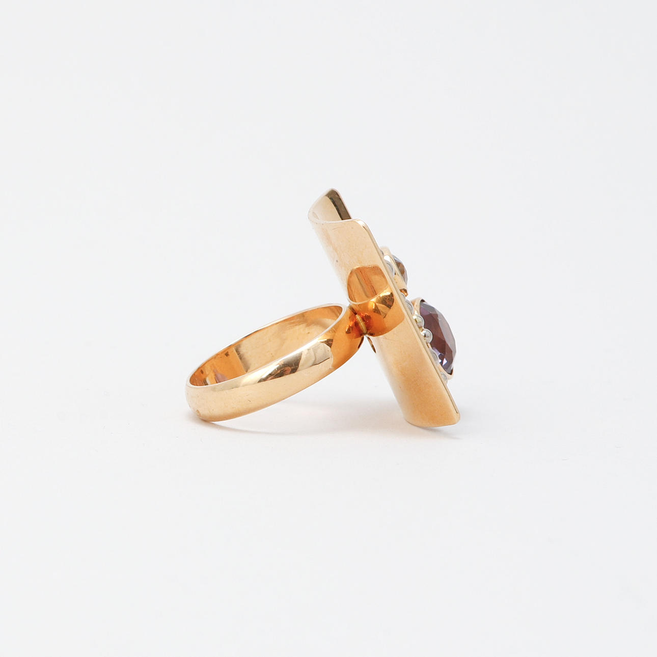 RING, 18k guld, ametister, akvamarin, Ada, Göteborg, vikt ca 18,8 gram.