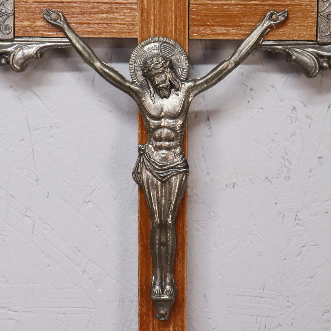 4807769. KRUCIFIX, trä och vitmetall, 1900-tal.