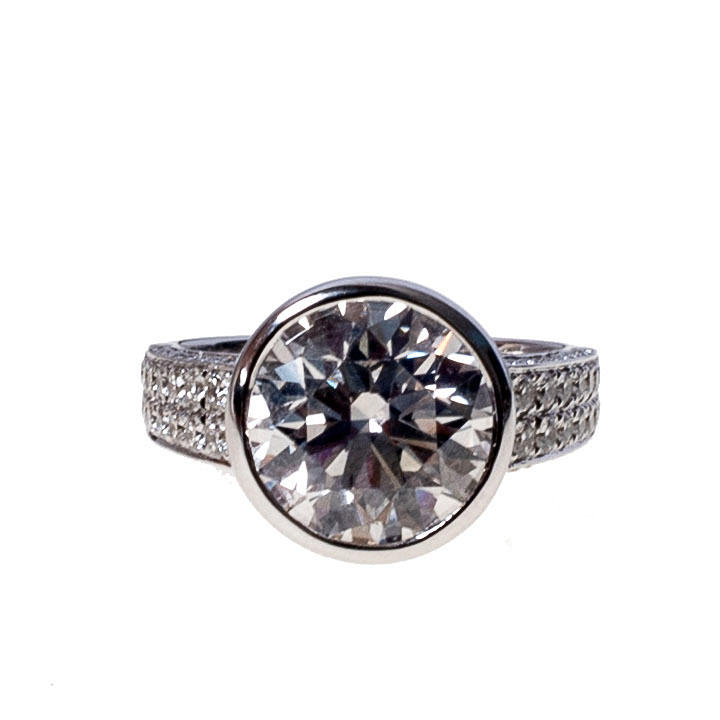 750 vitguld, axel med 88 briljantslipade diamanter tillsammans 0.80 ct, vit, vvs set, ringhuvud med en briljantslipad diamant 5.04 ct, Wesselton (H) vvs1, briljans excellent, RG.53,