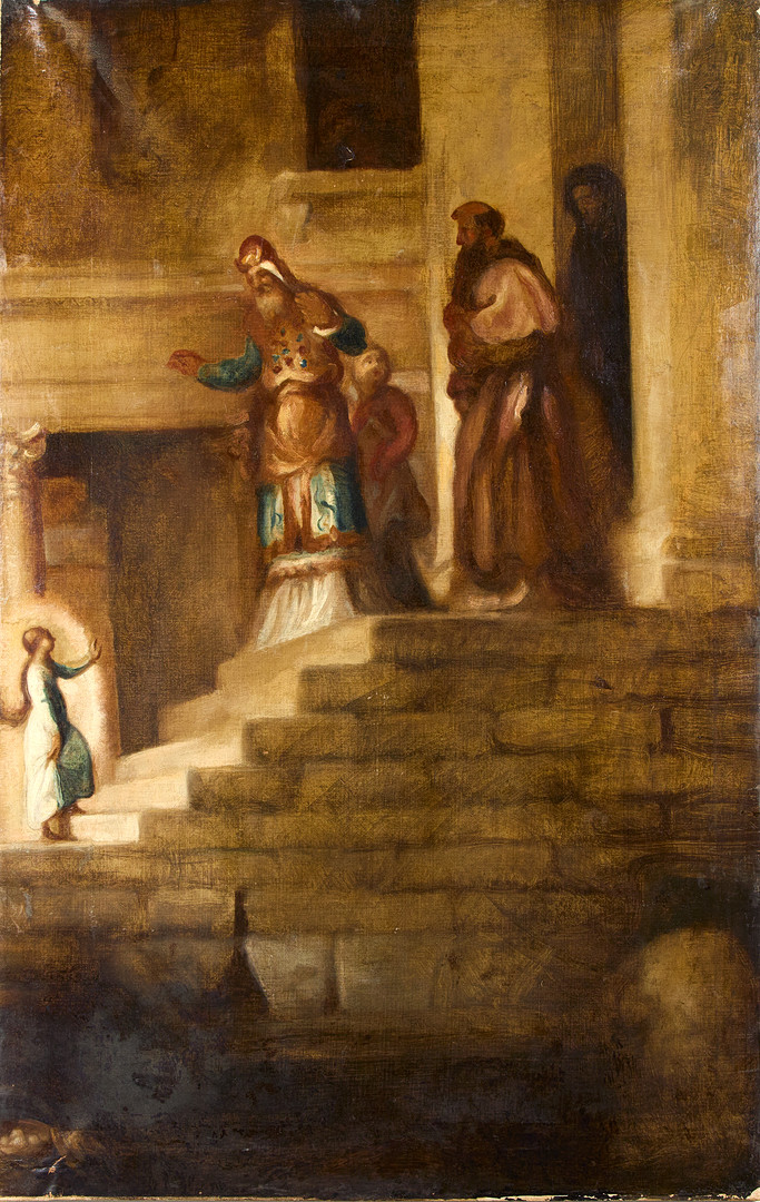 4816663. OKÄND KONSTNÄR. Figurscen vid trapp.