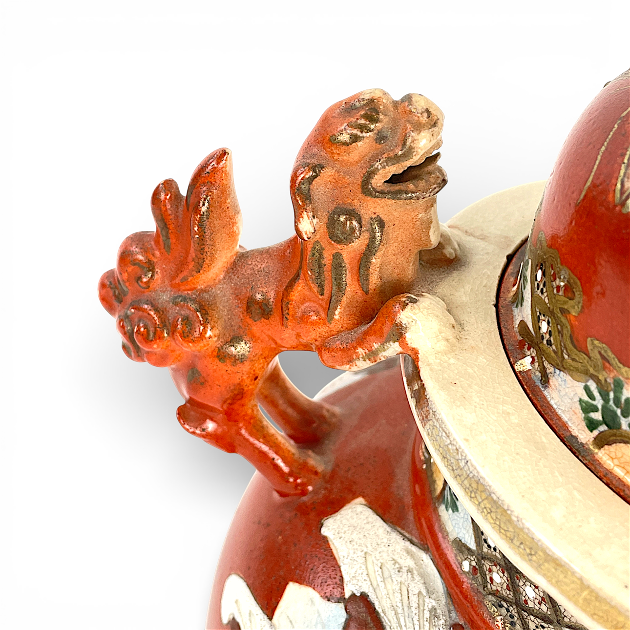 Bruksslitage, glasyr ställvis med krackeleing, ett par mininagg i mynningen, mindre avslag på foo-hund.