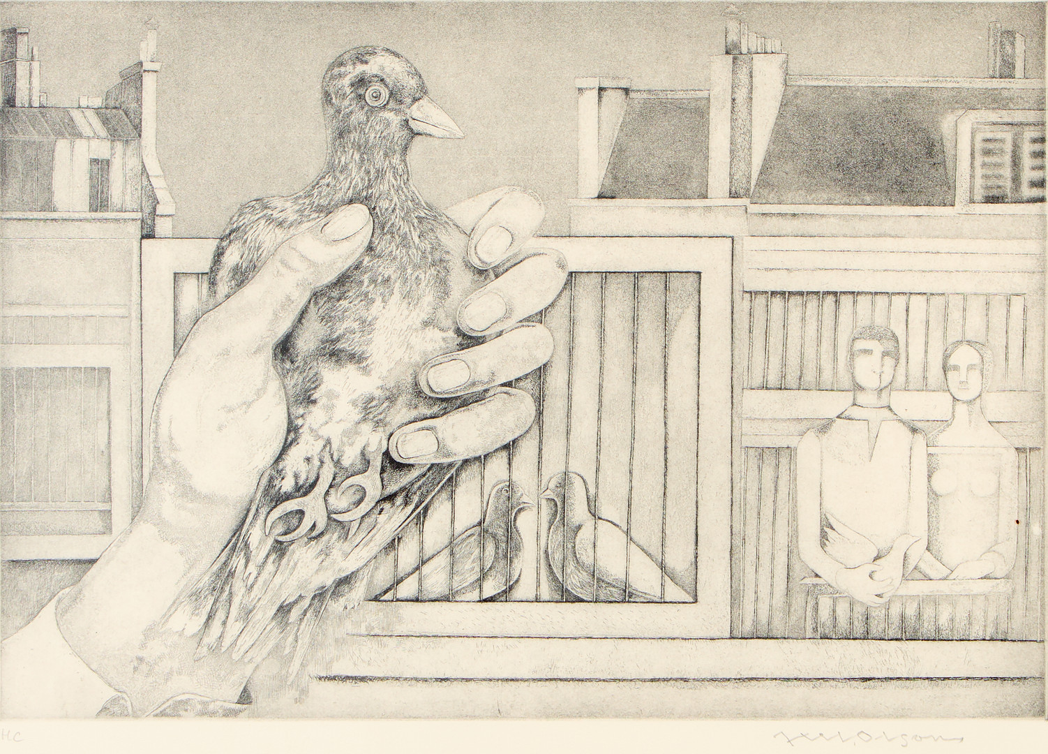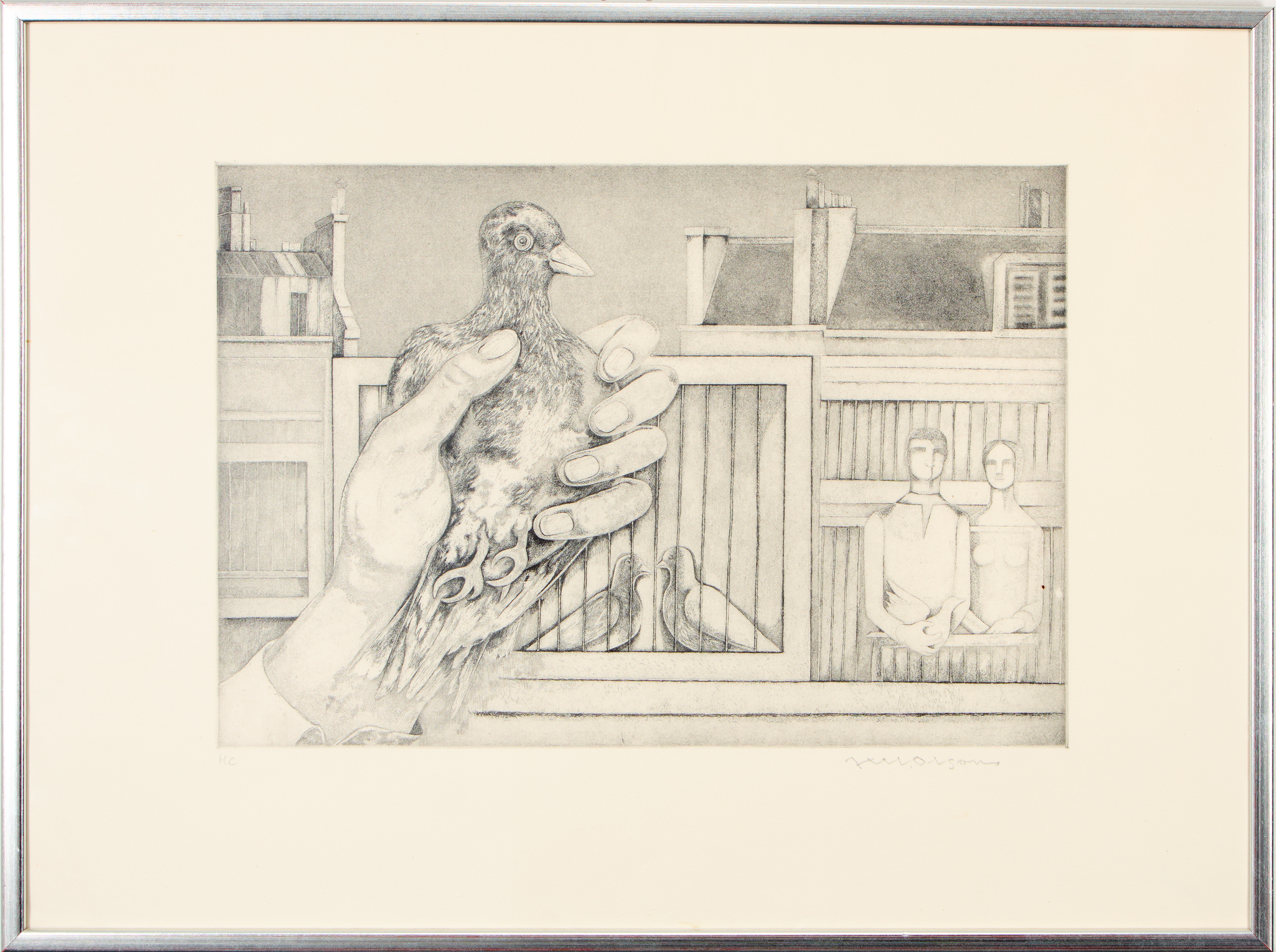 4821373. AXEL OLSON. Komposition med duvor.