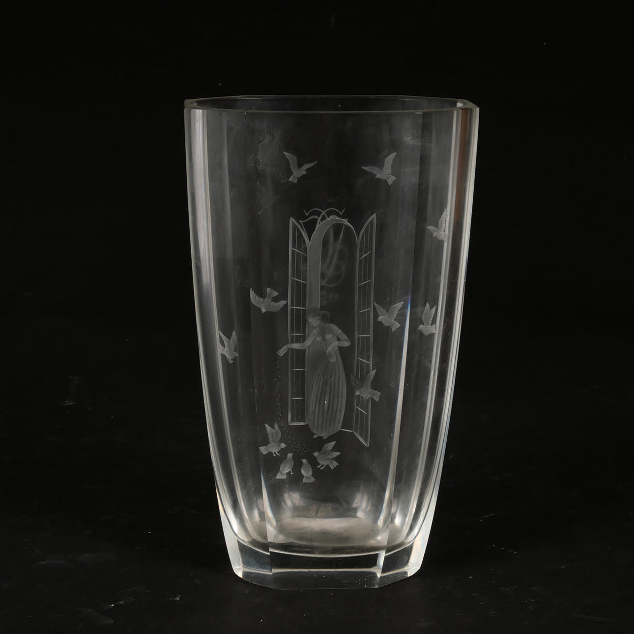 Vas Nils Landberg med dekor av kvinna som matar fåglar (modell 2412).