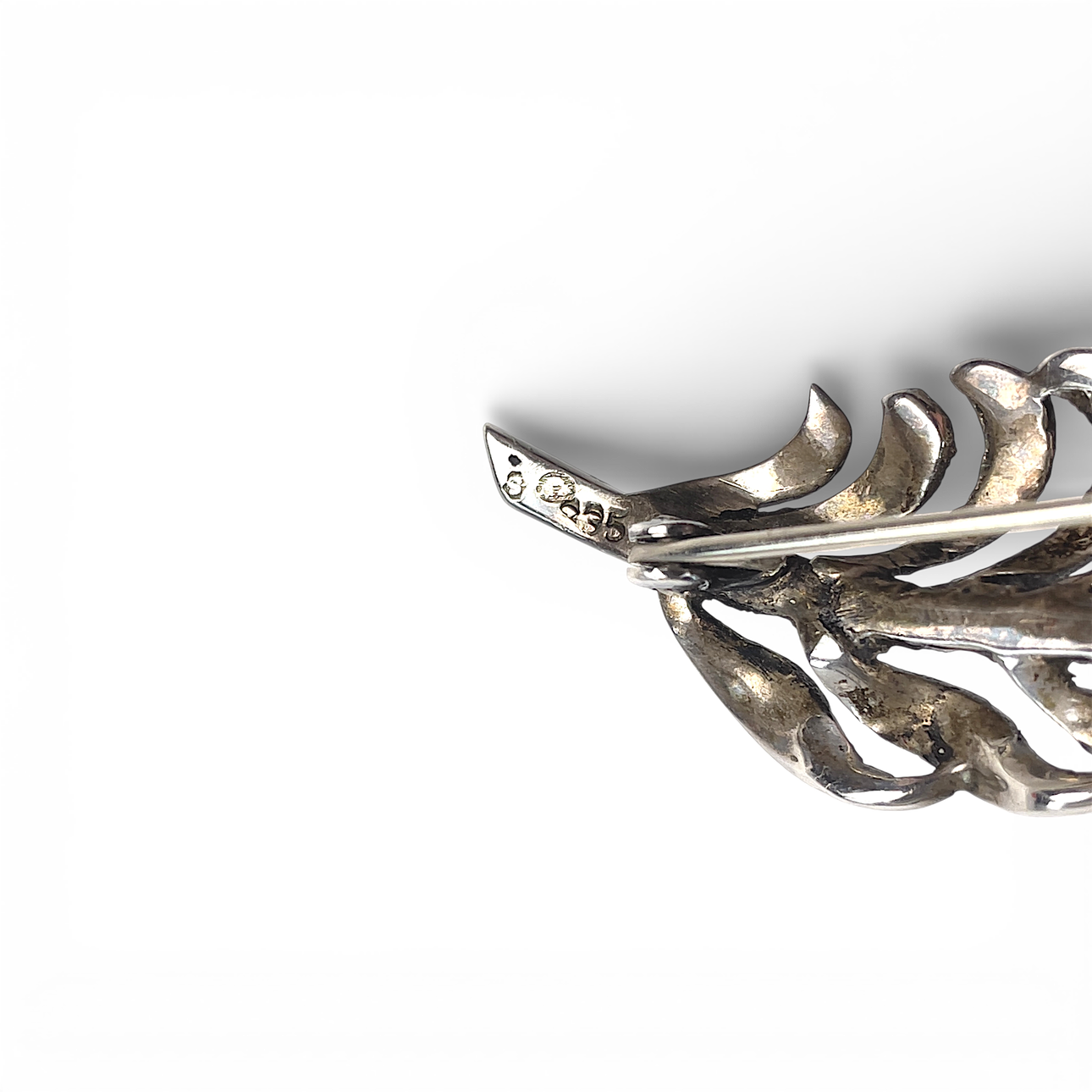 1 st brosch, silver 835, med markasiter, längd ca 6 cm.
