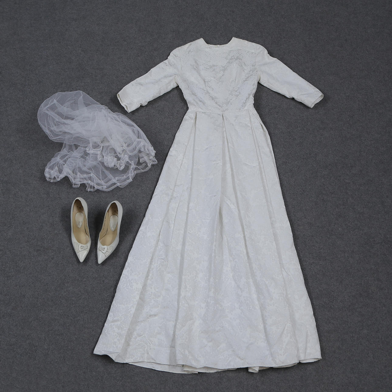 BRUDKLÄNNING SAMT KLACKSKOR ITALY (STORLEK 36).