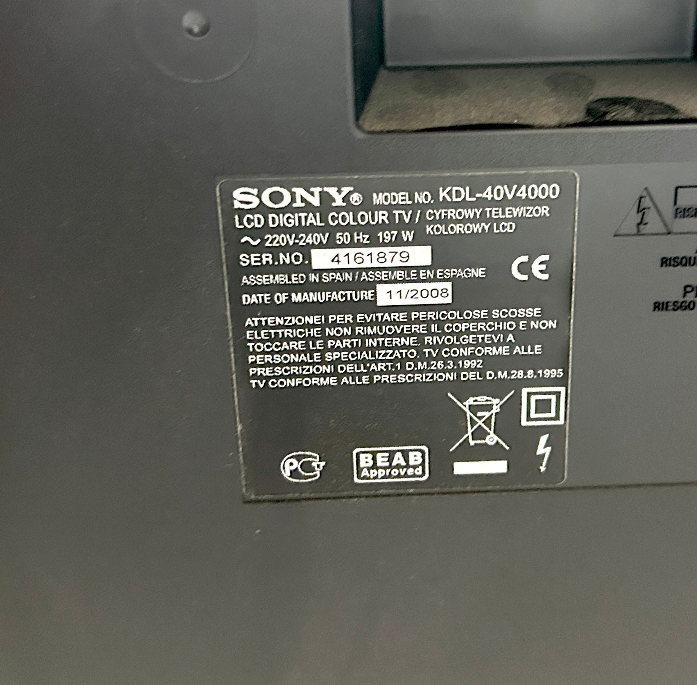 4841926. SONY 42 TUMS TV.