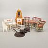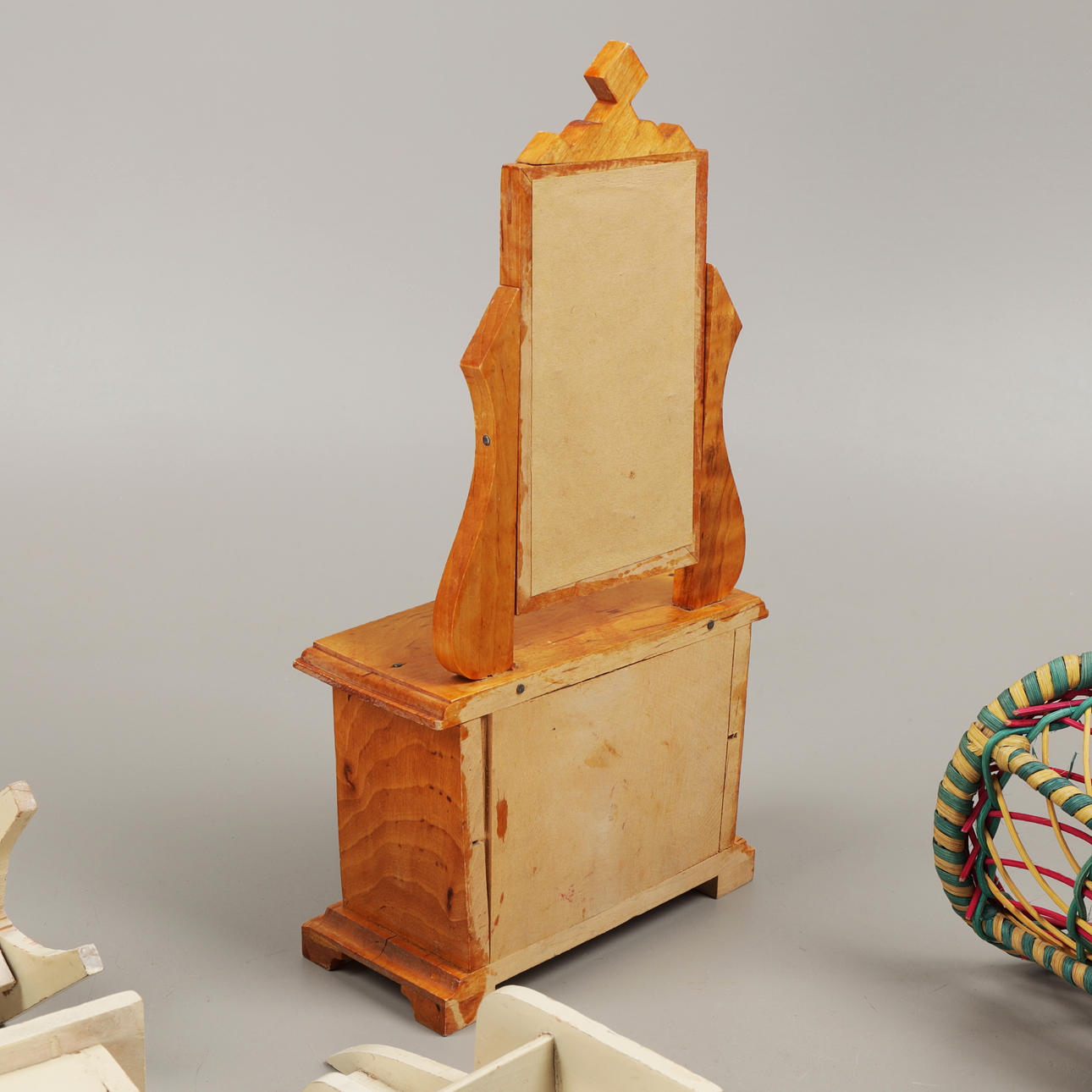 Bruksslitage, bemålad soffa med lös sits, spegelbyrå med fällningar i spegelglas.