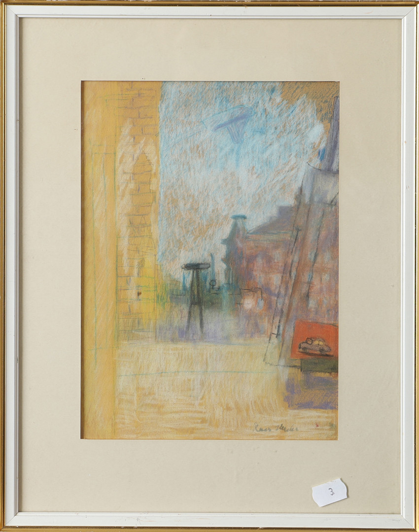 4844071. LARS HERDER. Stadsbild, pastell, signerad.