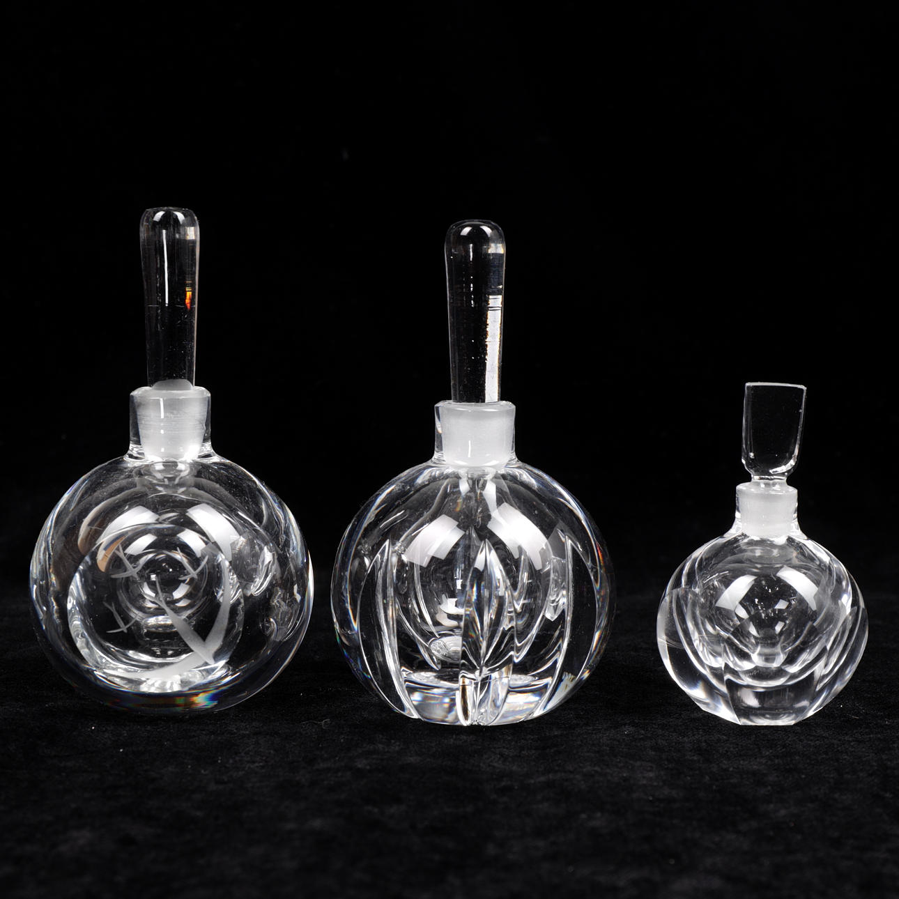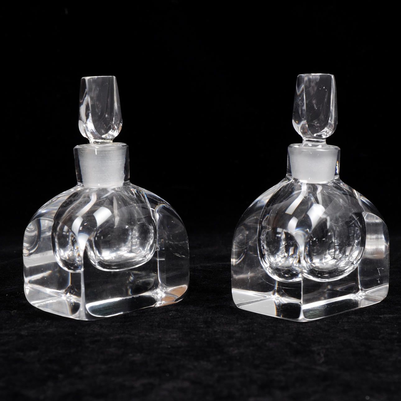 FLAKONGER, 5 st, glas, Orrefors, signerade.