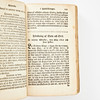 Nött och medfaret band, snittet med några fläckar, något lös i bindningen, småsolkig inlaga med enstaka fläckar, en sida med fastpressad blomma.