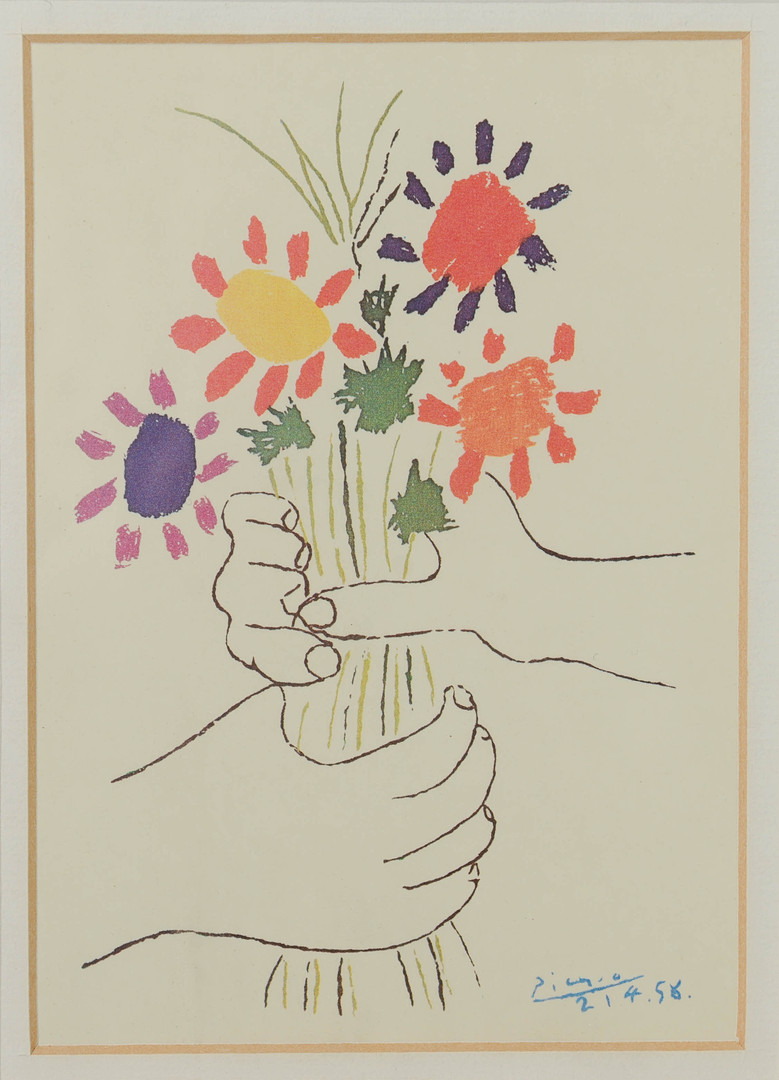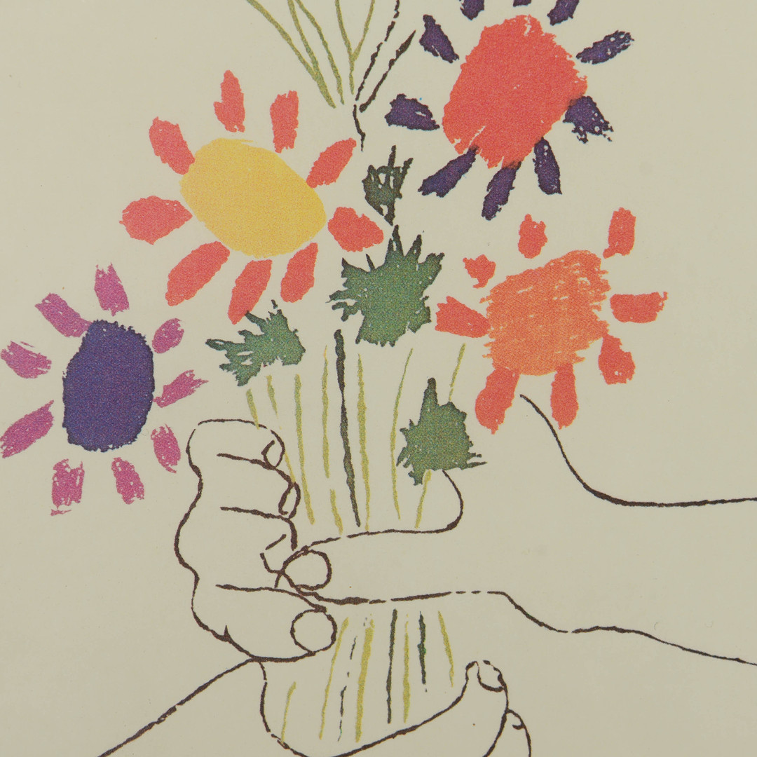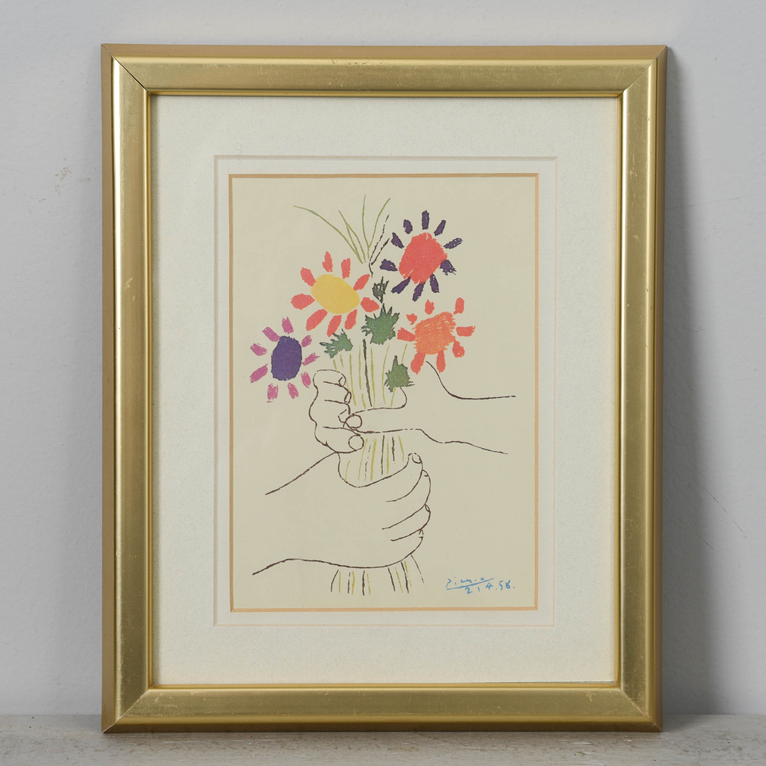 4845674. PABLO PICASSO. EFTER. "Buketten", Rastertryck, signerad i tryck.