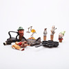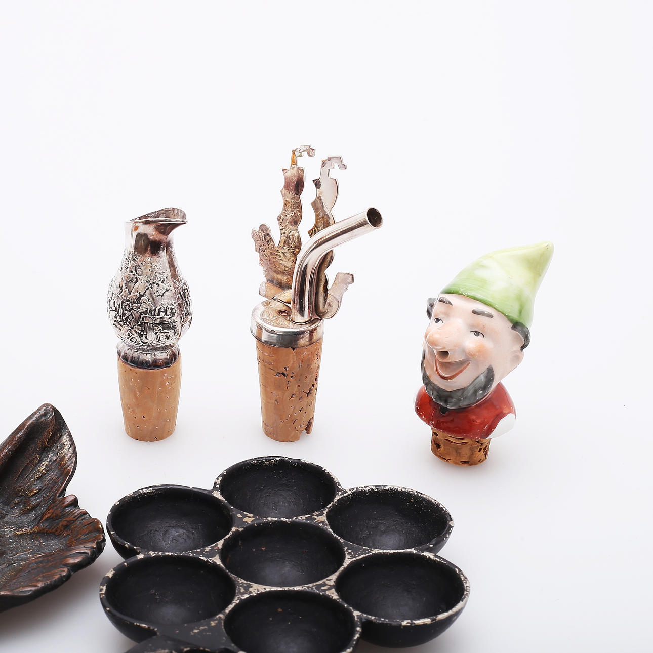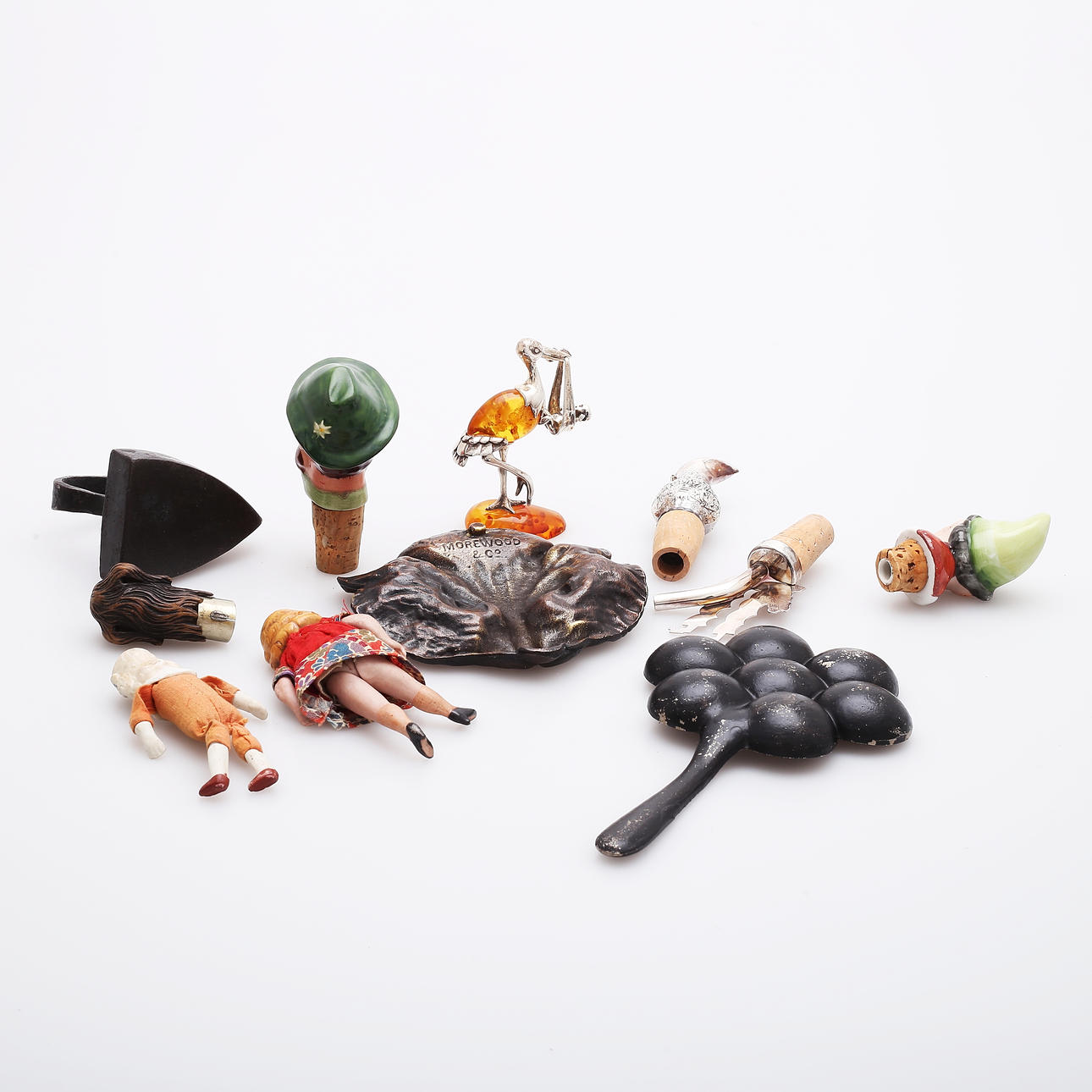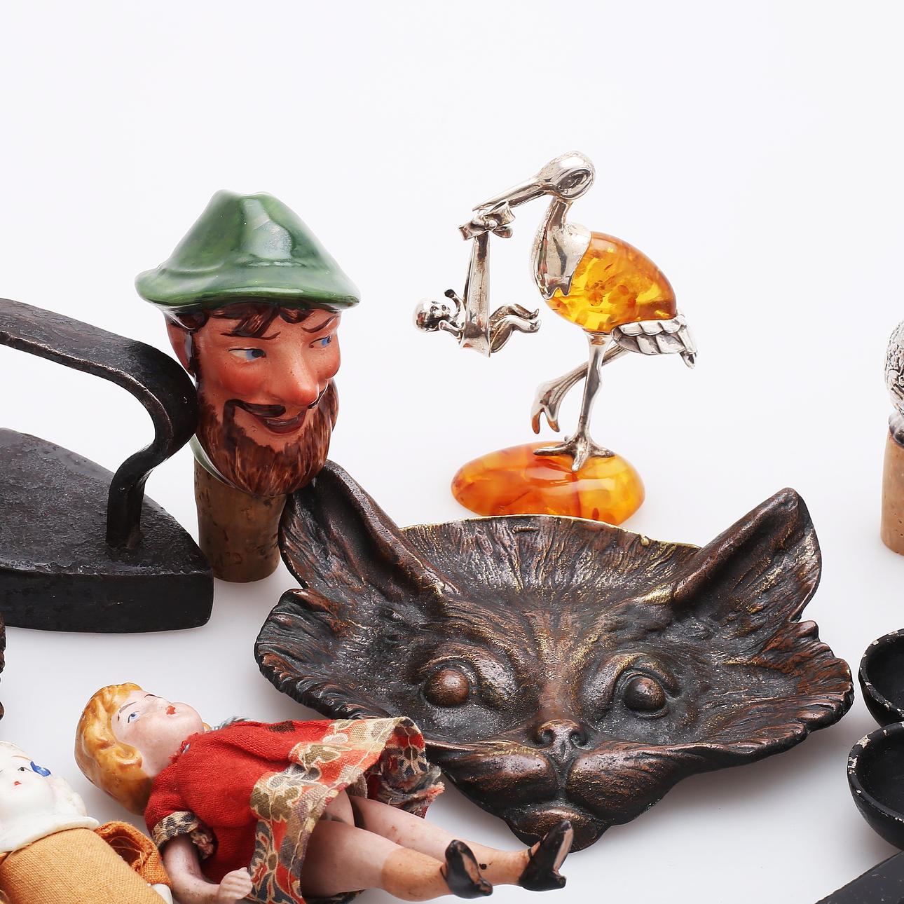 Stekjärn och strykjärn, metall, leksaksmodeller, längder 7 och 19 cm.