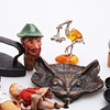 Fat, katthuvud, brons, mått 11x13 cm.