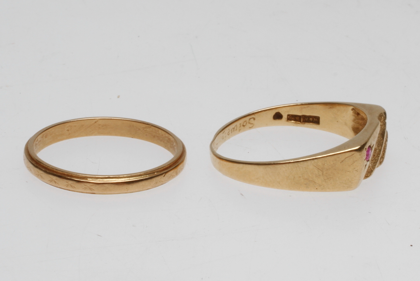 484910. RINGAR, 2 st, 18k guld, vikt ca 7 gr.