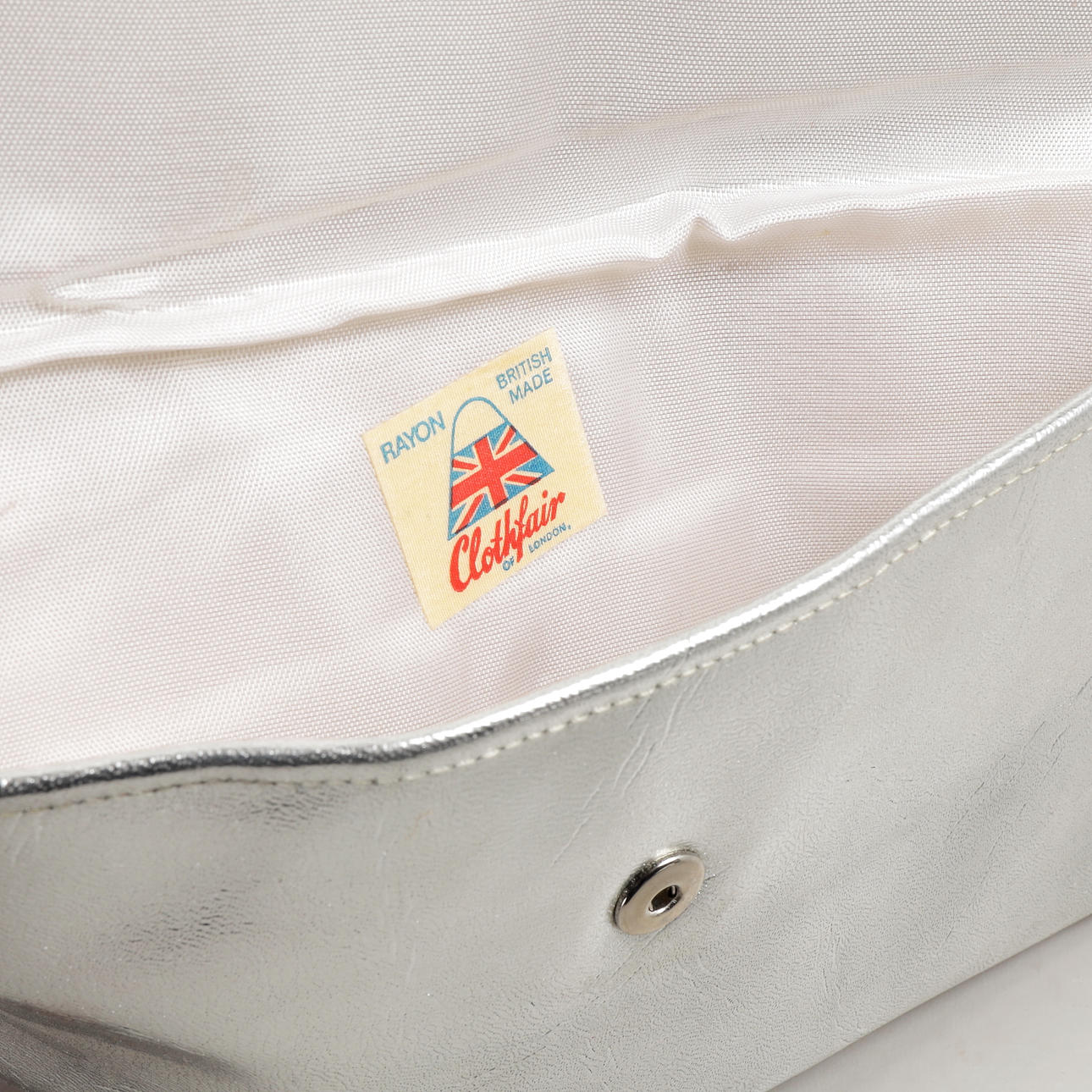 Silvrigkuvertväska märkt, "Rayon Clothfair of London"