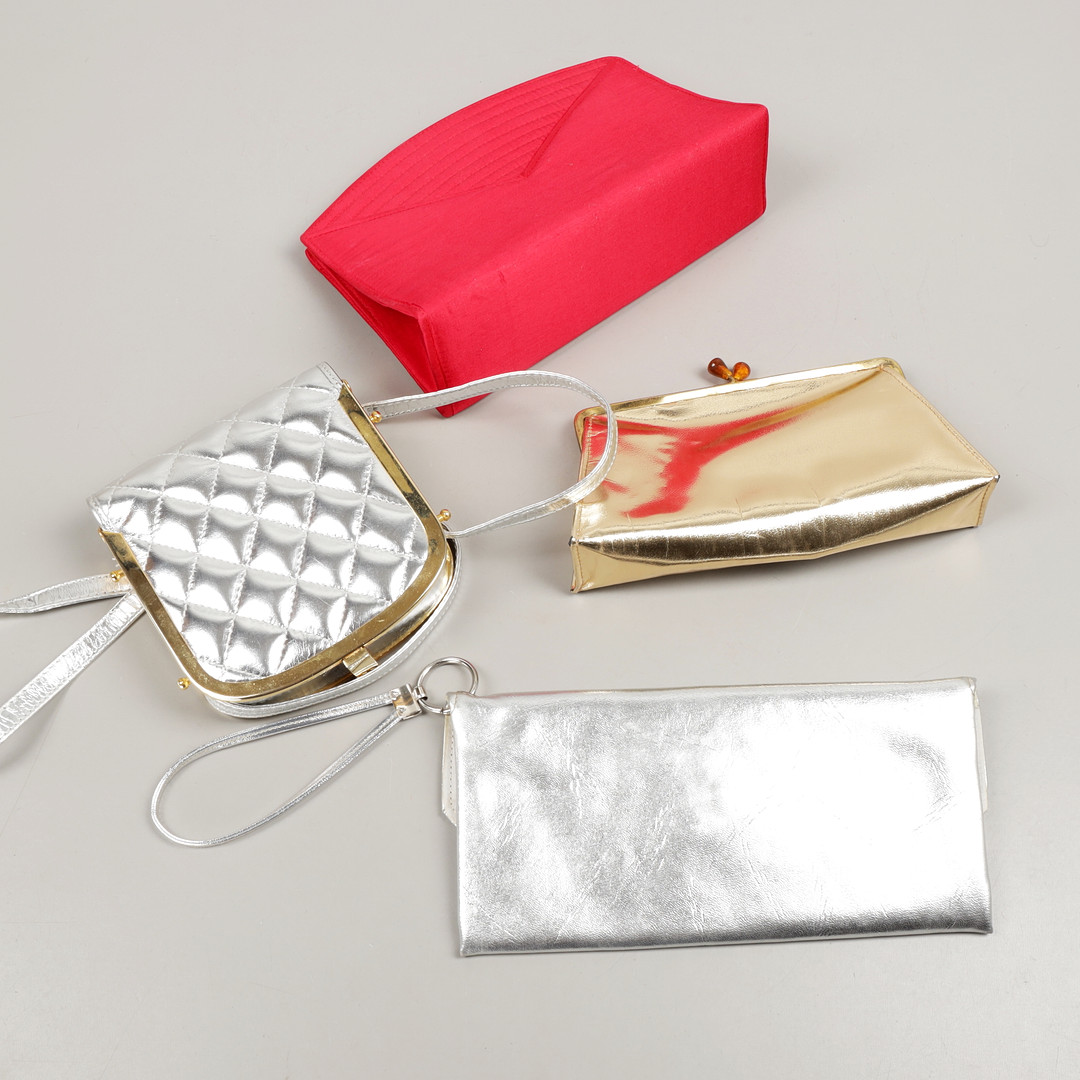 4854168. VÄSKOR, 4 st, 1900-talets mitt.