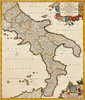 Kartan visar de södra delarna av Italien och Kungariket Neapel med L’Aquila, Gaeta, Neapel, del av Sicilien och Messina. Uppe i högra hörnet den stora titelkartuschen med putti och 12 vapensköldar. I nedre vänstra hörnet kartusch med måttskalan.