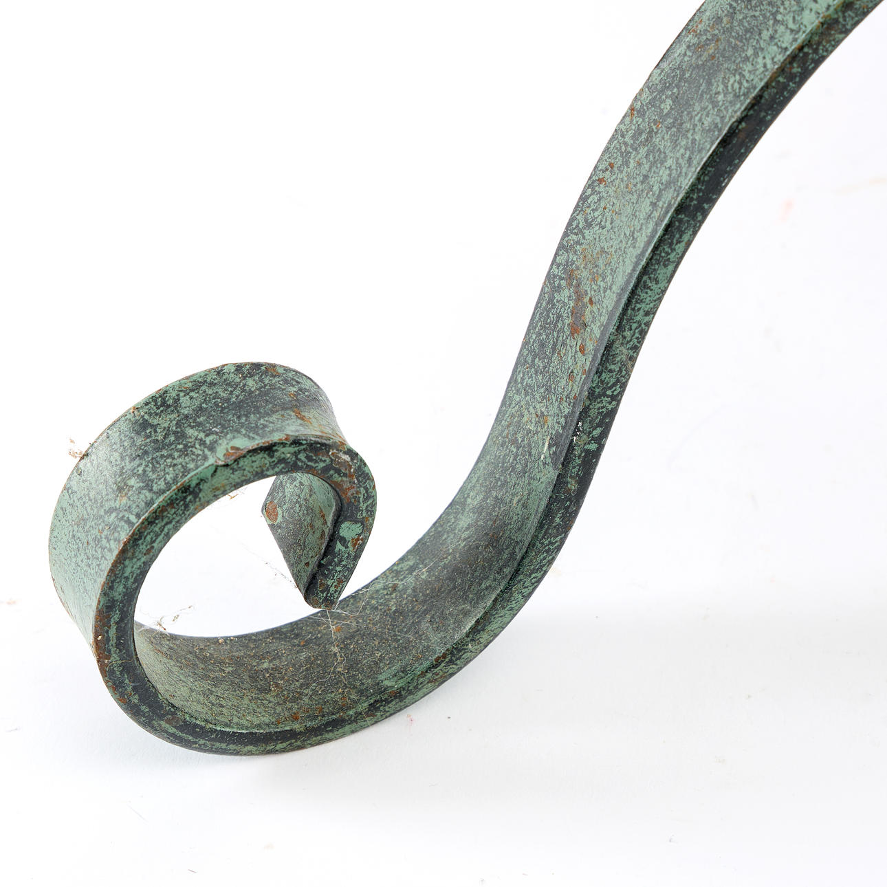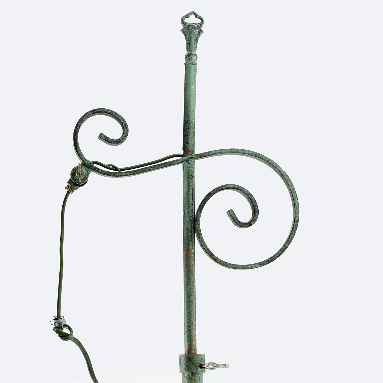 Patinerad smide, ställbar ljuspunkt, höj och sänkbar, höjd ca 123 cm (som på bild).