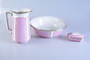 Kanna ca 29 cm Tvättfat ca ø 38 cm, 12 cm hög Tvålkopp ca 16 x 11 cm, 8 cm hög med lock, 4,5 cm utan lock.