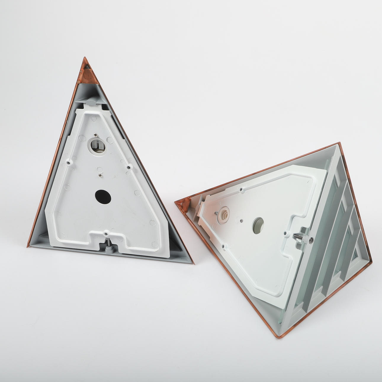 Obegagnade, slagskador nertill på hörnen.