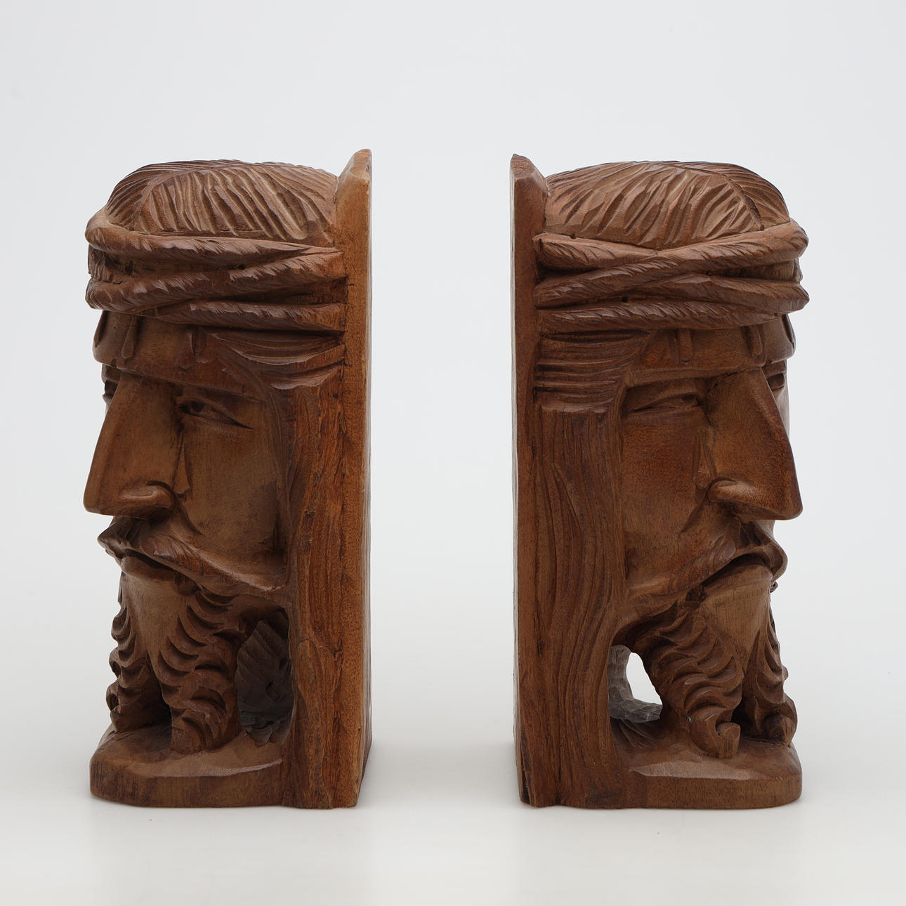 4863127. BOKSTÖD, 1 par, träsnideri.