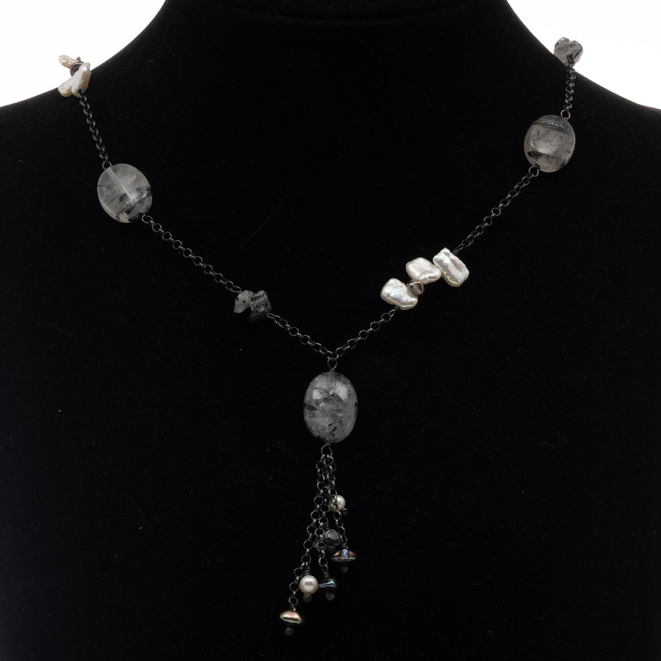 4863517. COLLIER, Oxiderat sterlingsilver, Rutilkvarts, Pärlor.